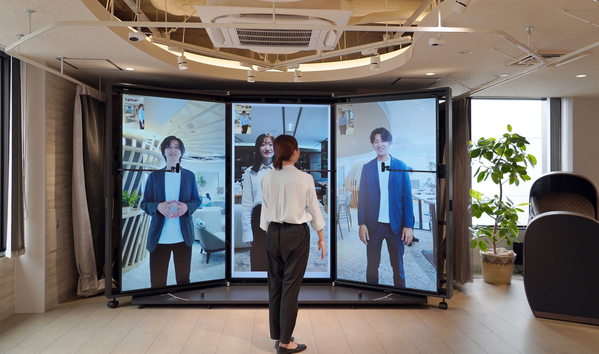 等身大映像によって4拠点間を常時つなぎ、“同じ空間にいるような”自然な対話を実現します。さらに、リアルサイズシミュレーションとしても活用可能。オリバーの空間づくりの知見とテクノロジーを融合した取り組みです。