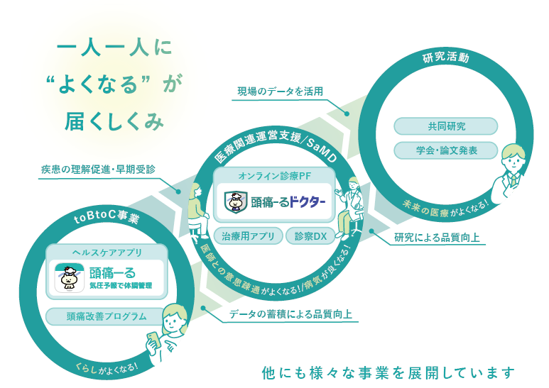 事業内容:頭痛領域におけるアプリ開発・診断機器開発・啓発活動など