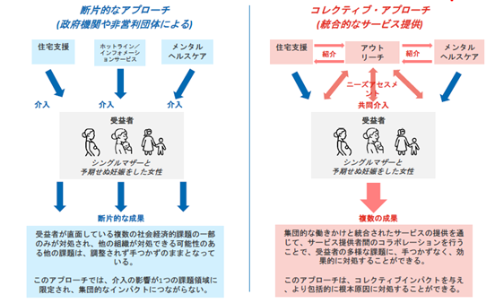 今回スタートさせる「シングルペアレンツ・エンパワメント・プログラムby American Express」は、分断されてしまいがちな支援の中でも、特にシングルマザーや予期せぬ妊娠をした方の住居とメンタルヘルスケアに焦点を当て、専門の非営利団体やアドバイザーと連携したコレクティブ・アプローチを基本モデルとして構築することで、今後も再現可能な統合プログラムモデルにすることを目的としています。
