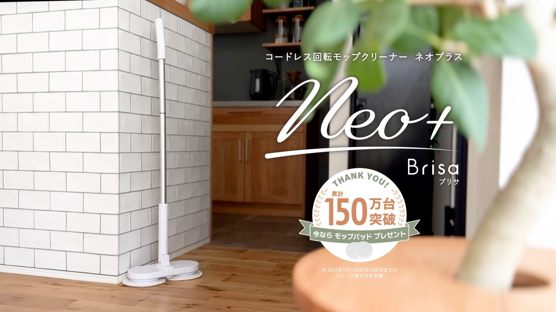 『コードレス回転モップクリーナーシリーズ』は2015年の発売から10年、累計出荷台数150万台を突破いたしました。このたび、150万台出荷を記念してモップパッドを1セットプレゼントするキャンペーンを、数量限定で実施いたします。キャンペーン対象モデルは、回転数が切り替えられお風呂掃除にも便利な防水設計(IPX5相当)の「コードレス回転モップクリーナー Neo+Brisa」と、製品重量1kgをきるシリーズ最軽量モデル「コードレス回転モップクリーナーライト」からお選びいただけます。
