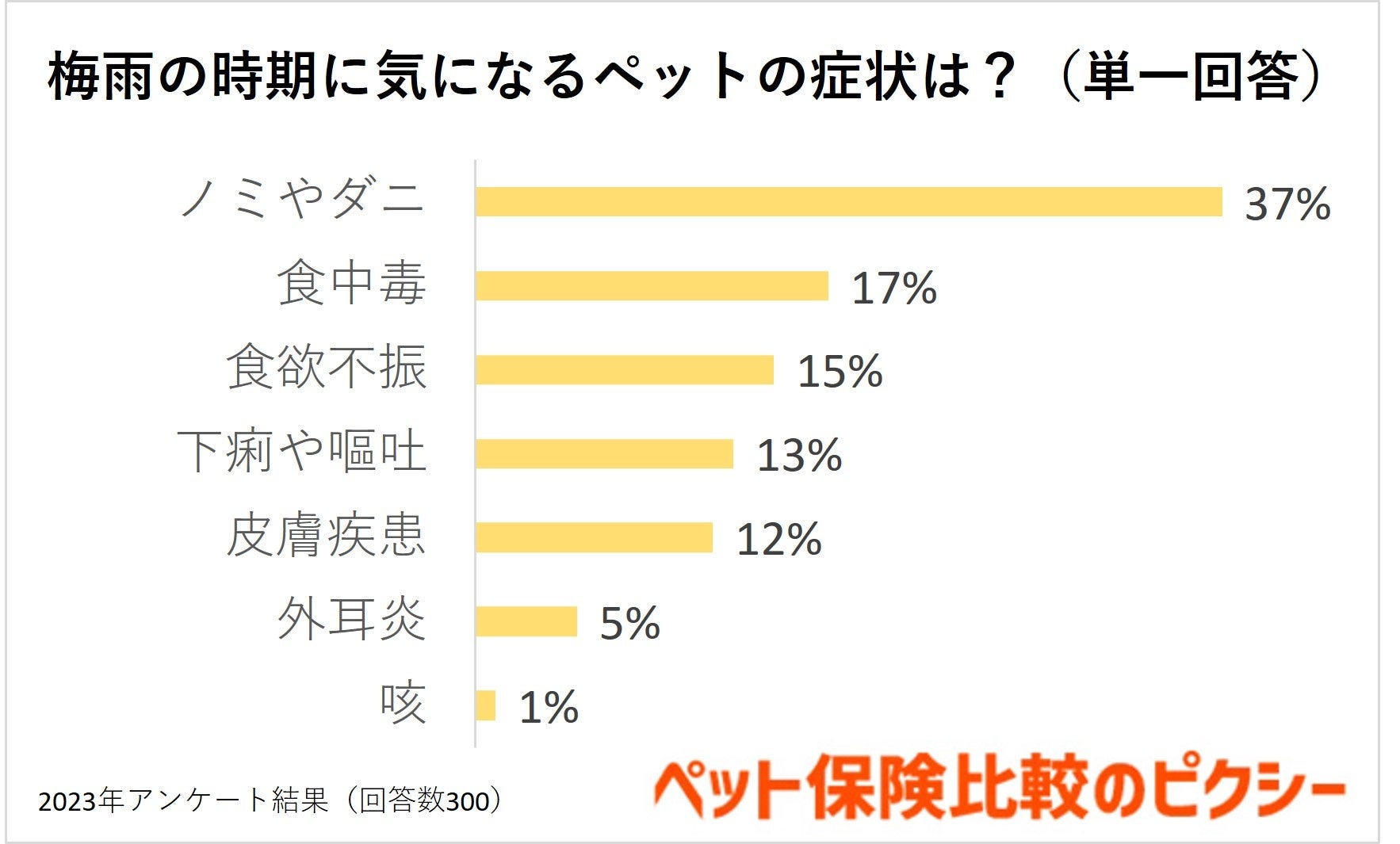 梅雨に気になるペットの症状は「ノミやダニ」が37%