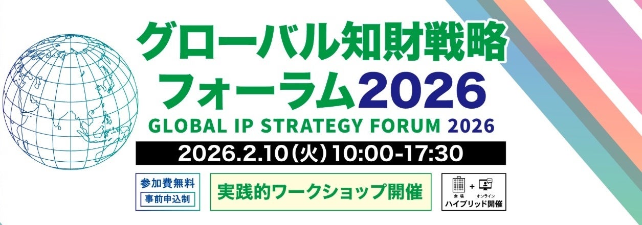 INPIT(独立行政法人 工業所有権情報・研修館)(東京都港区、理事長:渡辺 治)は、特許庁(東京都千代田区、長官:河西 康之)と共催で、2026年2月10日(火)に会場とオンラインのハイブリッド形式にて「グローバル知財戦略フォーラム2026」を開催いたします。