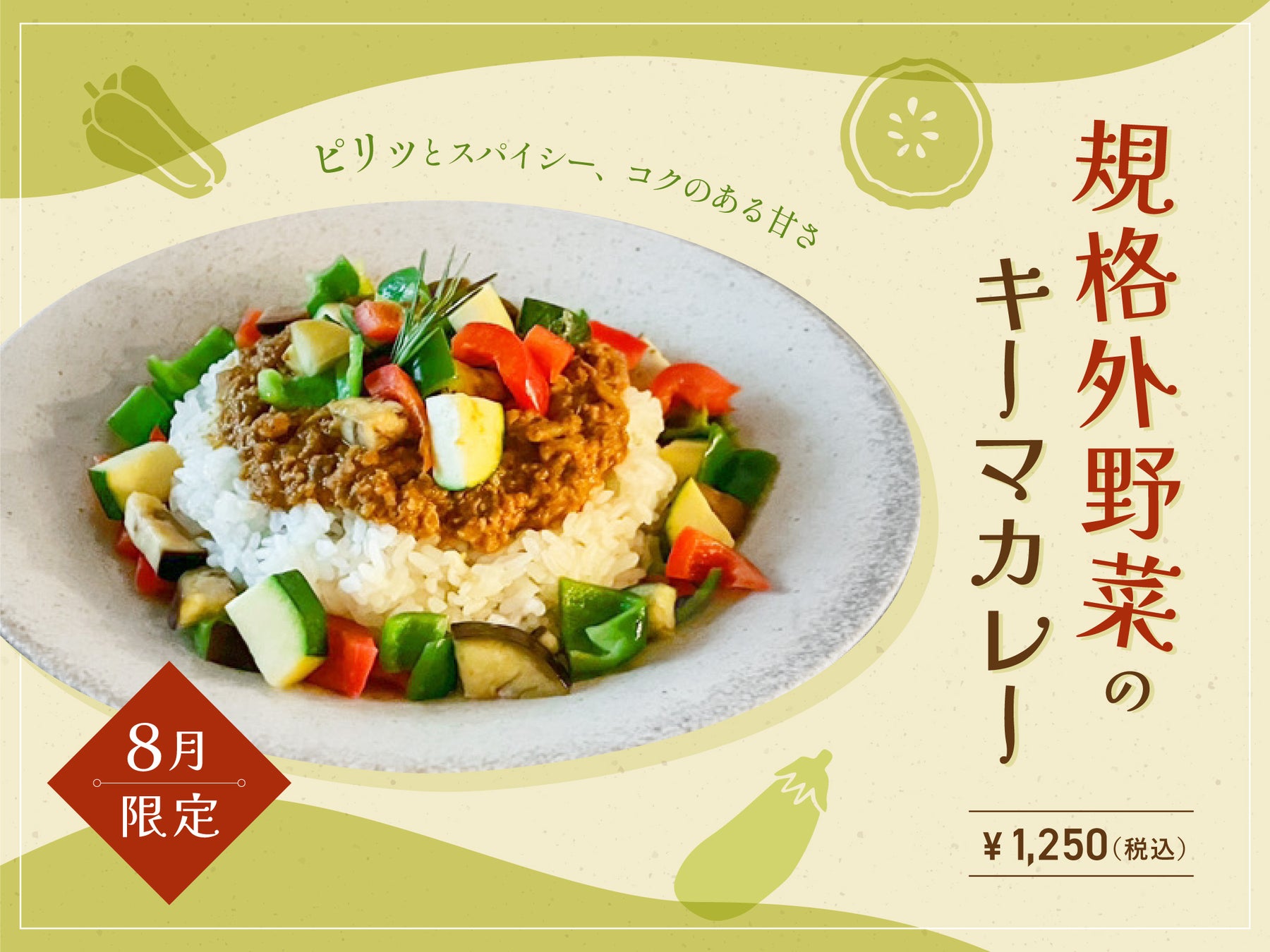 規格外の夏野菜をたっぷりトッピングした、オリジナル無水キーマカレーが登場。