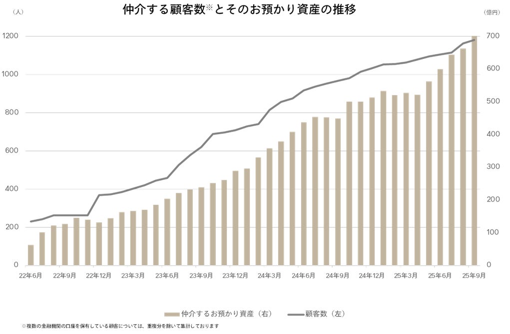 独立系ファイナンシャルアドバイザー(IFA)法人として日本の金融サービスの変革を目指す株式会社 IFA Leading (本社:東京都渋谷区、代表取締役:長谷川 学)は、サービス提供開始から約3年となる2025年9月時点で当社が仲介する預かり資産が700億円を突破したことをお知らせいたします。