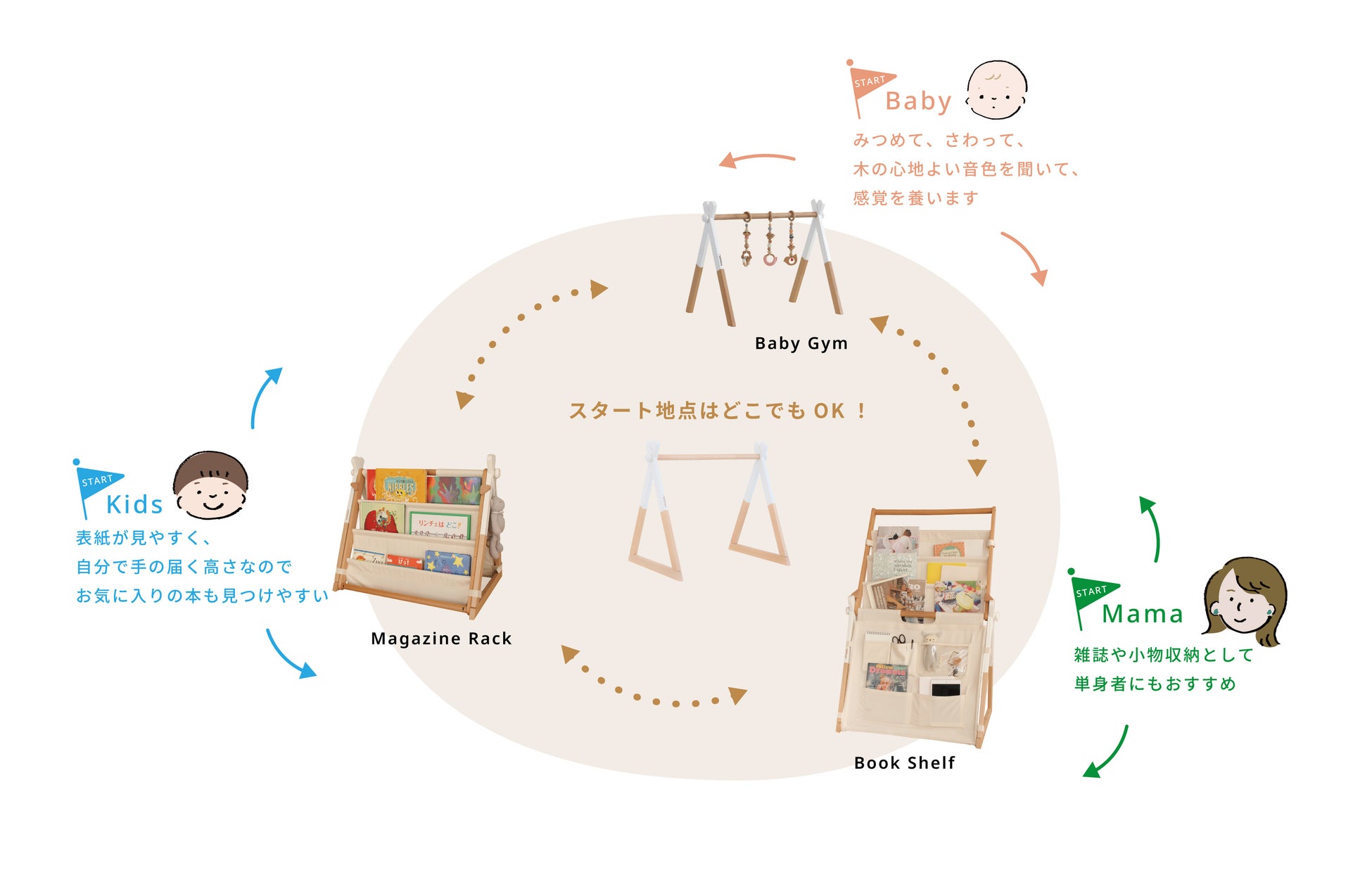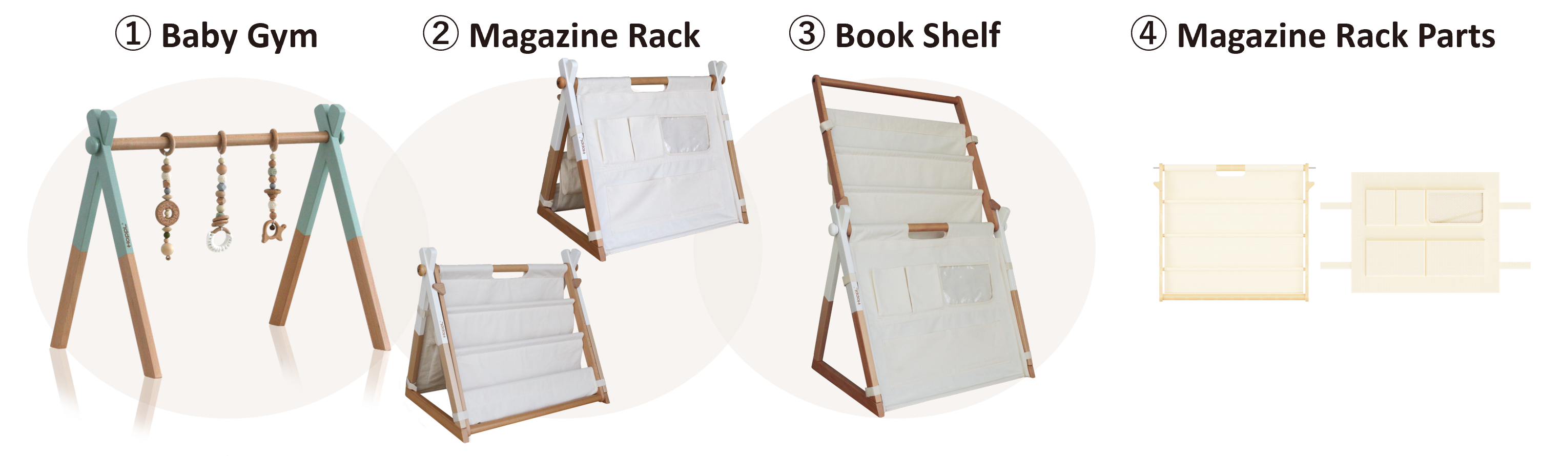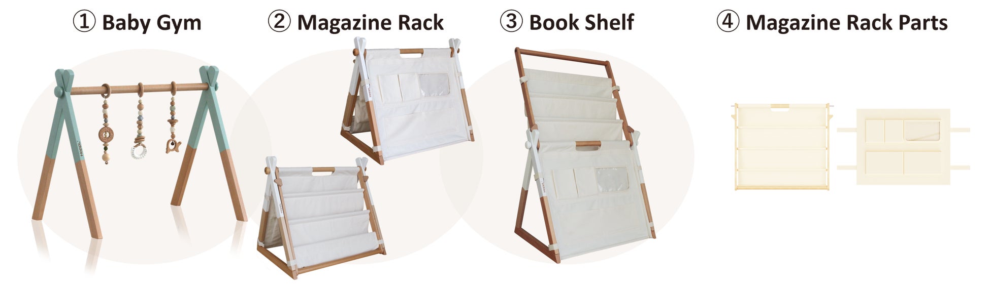 ※ ④のMagazine Rack Parts は既にベビージムをお持ちの方に対応しており、この商品単体ではマガジンラックにはなりませんのでご注意ください。