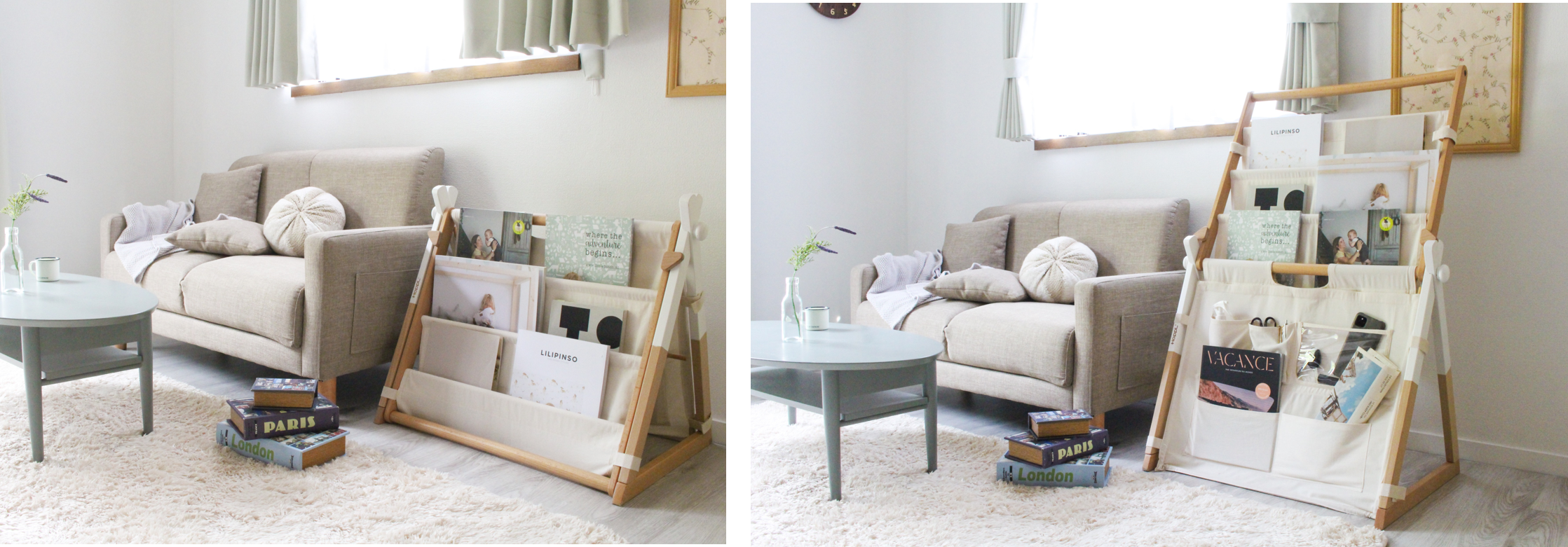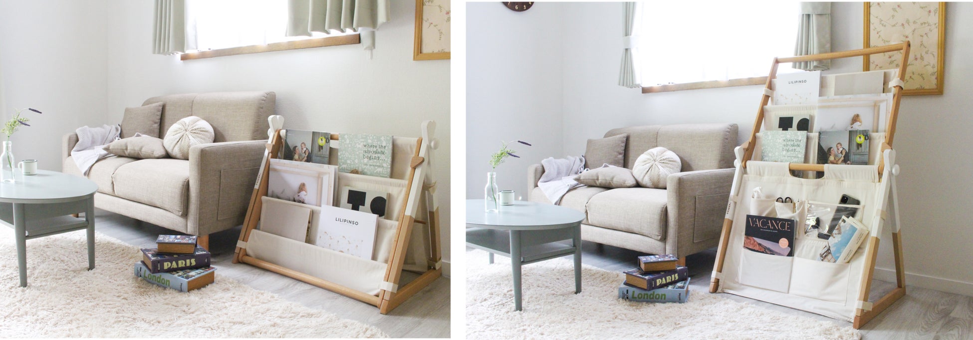 お子様が成長し、不要になったマガジンラックはナチュラルに馴染むデザインの為、リビングや寝室など場所や年齢を選ばずに使用できます。「物を大切に使う」というお子様の心を育て、成長の過程でいつの日か赤ちゃんの頃を懐かしむようになる、いつまでもそばに置いておきたい素敵なインテリアです。