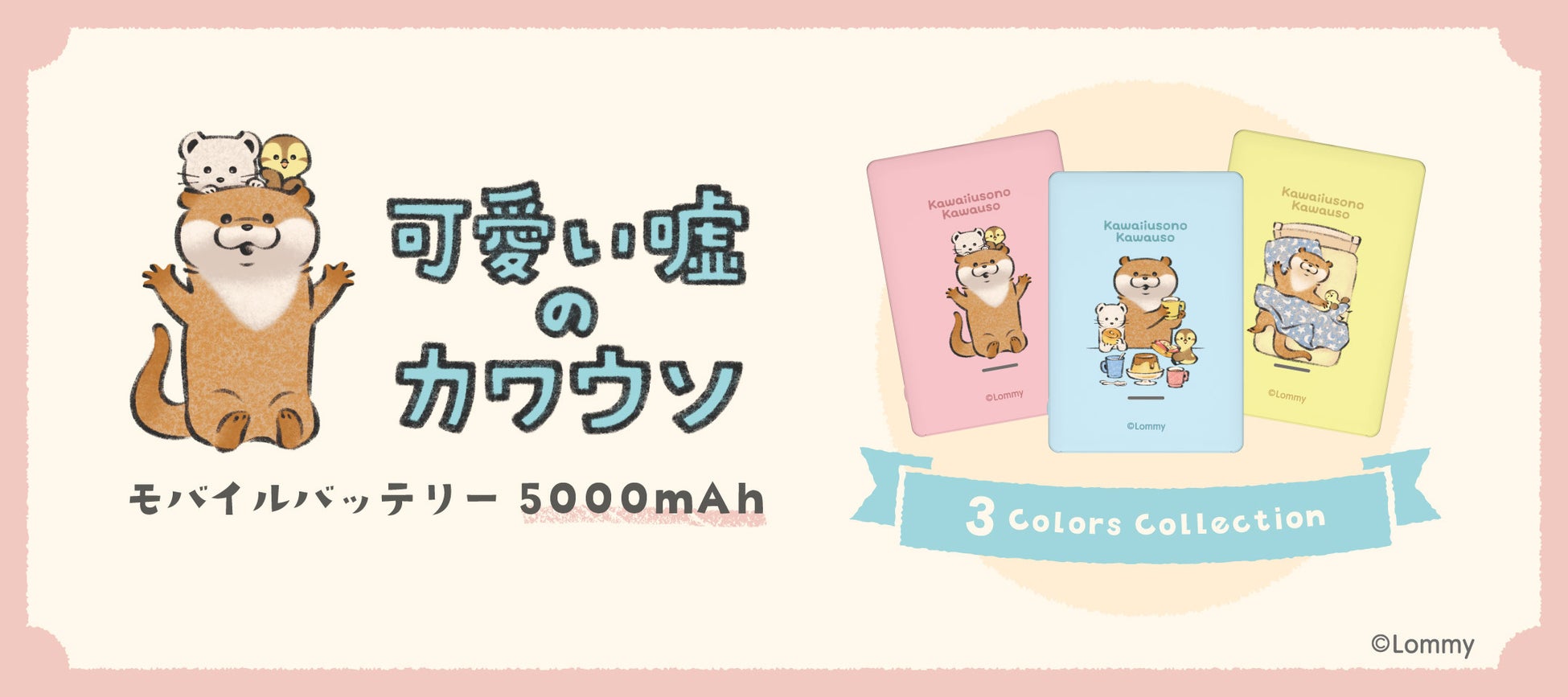 イラストレーターのLommy氏が描く、「可愛い噓のカワウソ」のモバイルバッテリー3種を発売!