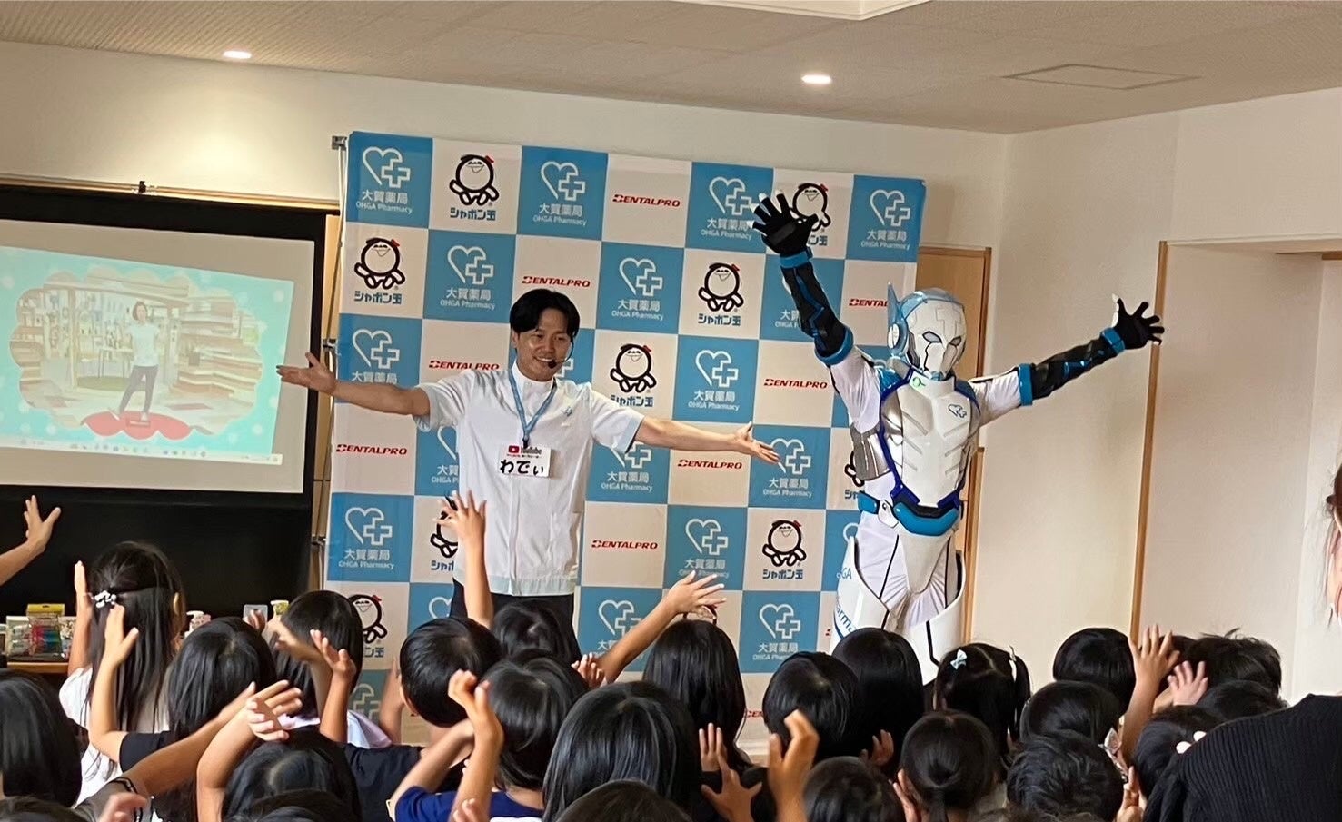 「残薬問題」は、現在問題となっている薬不足や今後予想される医療資源の限界や社会の持続可能性を考える上で切り離せない課題です。今の日本社会では、薬を正しく服用し、飲み切ることが単に個人の健康を守るだけでなく、社会全体の医療資源の適正活用や供給不足の解消にもつながるという認識が必要です。こうした課題に対応するためには、薬の適正使用、薬を減らすことを促す啓発が不可欠です。本プロジェクトでは、「薬を減らす」「薬の飲み残しを防ぐ」といった残薬問題への取り組みに加え、子どもたちへの病気の「予防」を軸に、地域の未来を守ることを目的に、2022年より活動を開始しました。 活動では、大賀薬局のコーポレートヒーロー「薬剤戦師オーガマン」と「薬剤師YouTuberワディ」が福岡市近郊を中心に保育園・幼稚園を訪問し、正しい手洗いやうがい、歯磨きとデンタルフロスの使用方法を楽しみながら学べるプログラムを提供し、処方された薬を最後まで飲み切ることの重要性を伝える活動となります。3年目となる2024年は、84園・9,712人にやくいく啓発活動を行い、これまでに延べ26,327人以上の子どもたちにそのメッセージを届けました。