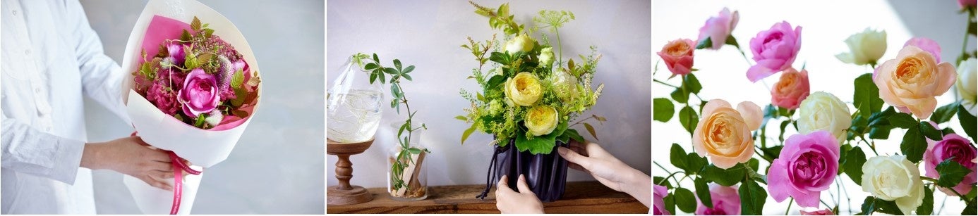 また、生活シーンごとに季節の花を束ねた3種類のライフスタイルブーケや、すぐにお持ち帰りいただけるプレゼント用ギフトブーケも多数ご用意。ご要望に応じたブーケやアレンジメントもオーダーを承りますのでお気軽にスタッフへお声掛けください。旬の花々で日常的に潤いと彩りををそえませんか?皆さまのご来店をお待ちしております。