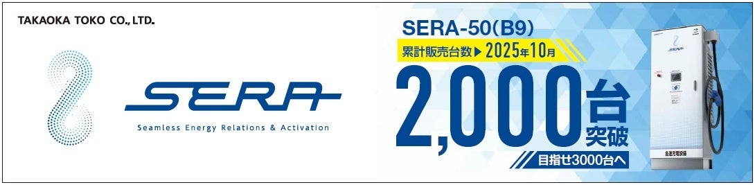 株式会社東光高岳(以下「東光高岳」)は、当社が開発・製造を行うEV用急速充電器「SERA-50」が、2025年10月7日をもって、累計出荷台数2,000台を突破したことをお知らせいたします。