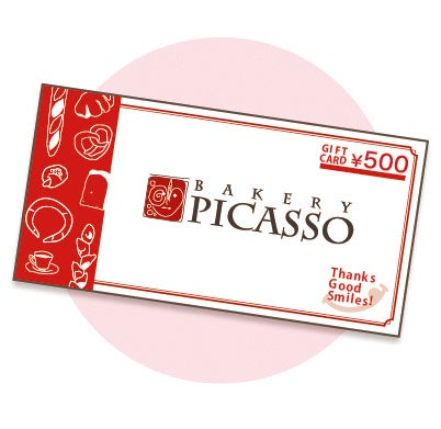 ベーカリーピカソの実店舗でご利用いただける500円×12枚綴りの商品券です。