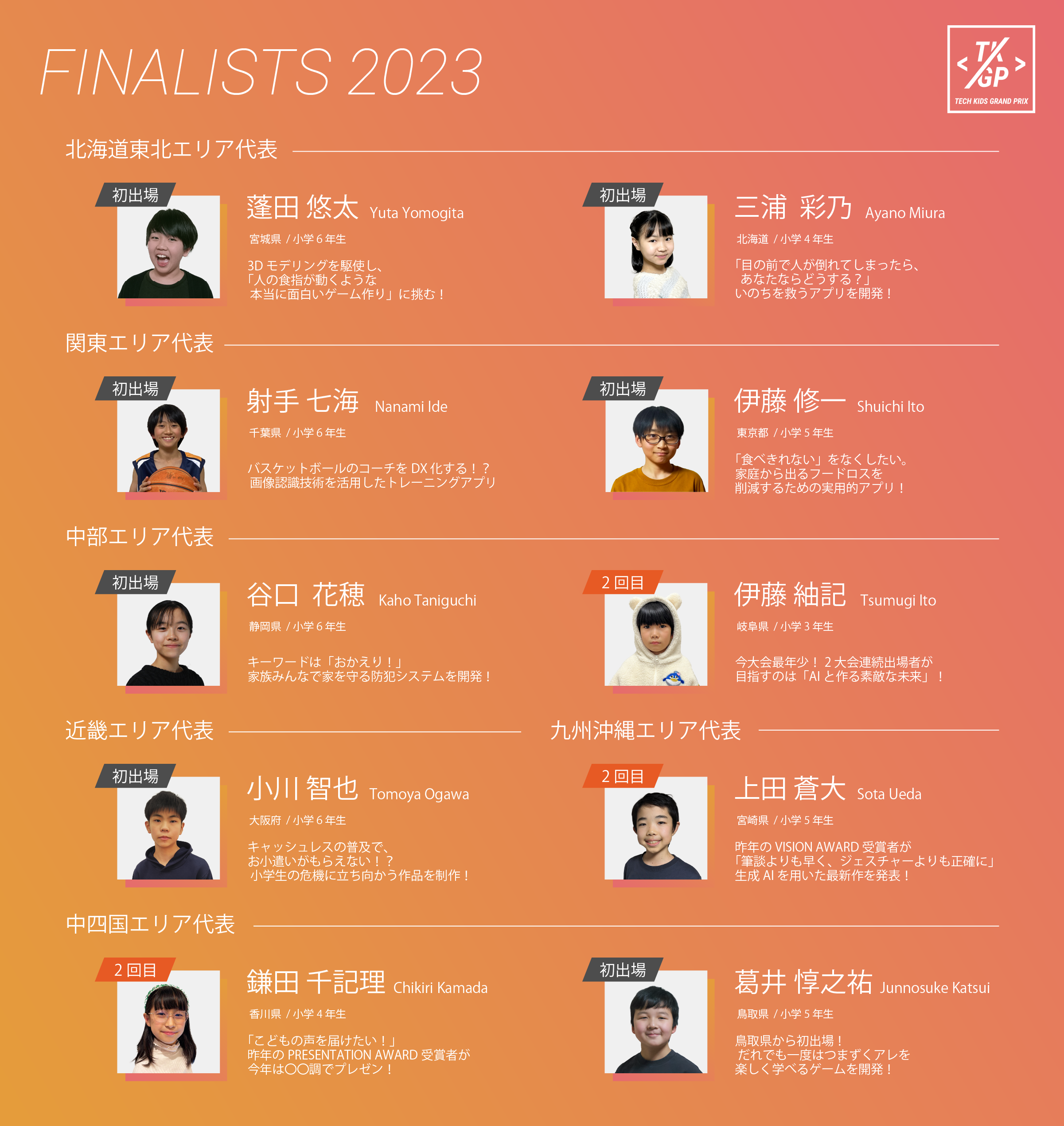 「Tech Kids Grand Prix 2023」ファイナリスト10名について