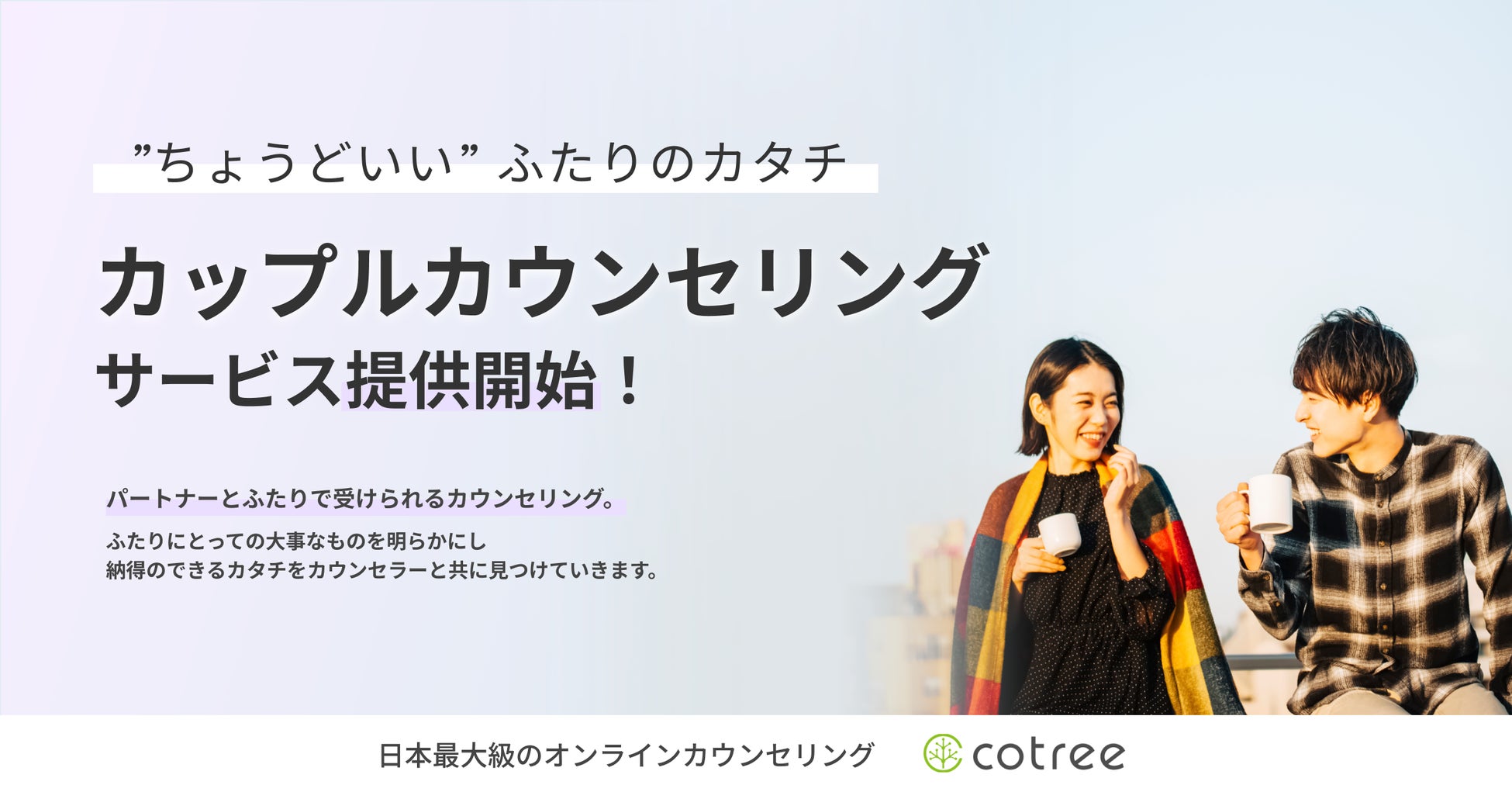 オンラインカウンセリング・コーチングの「cotree」を展開する株式会社cotree(本社:東京都港区、代表取締役:西岡 恵子、以下cotree)は、「いい夫婦の日」である2022年11月22日(火)に、カップルカウンセリングの提供を開始します。