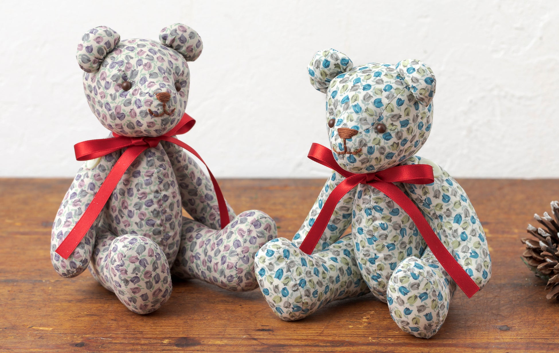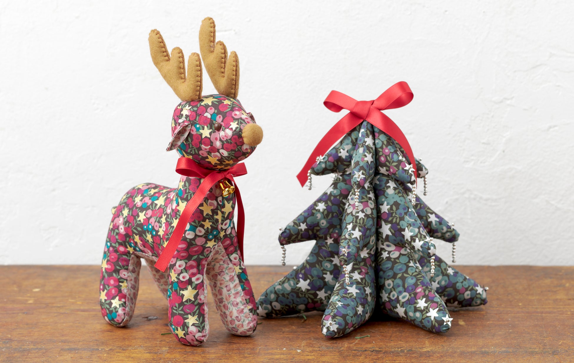 ホビーラホビーレオリジナルカラーのリバティプリントでつくるクリスマスの手芸アイテムを4種類発売。グリッターがきらめく〈ティルティル〉を使ったおしゃれな布製ベアや、パール顔料の星が輝く〈ウィルトシャー〉のトナカイやクリスマスツリーは並べて飾っても素敵です。