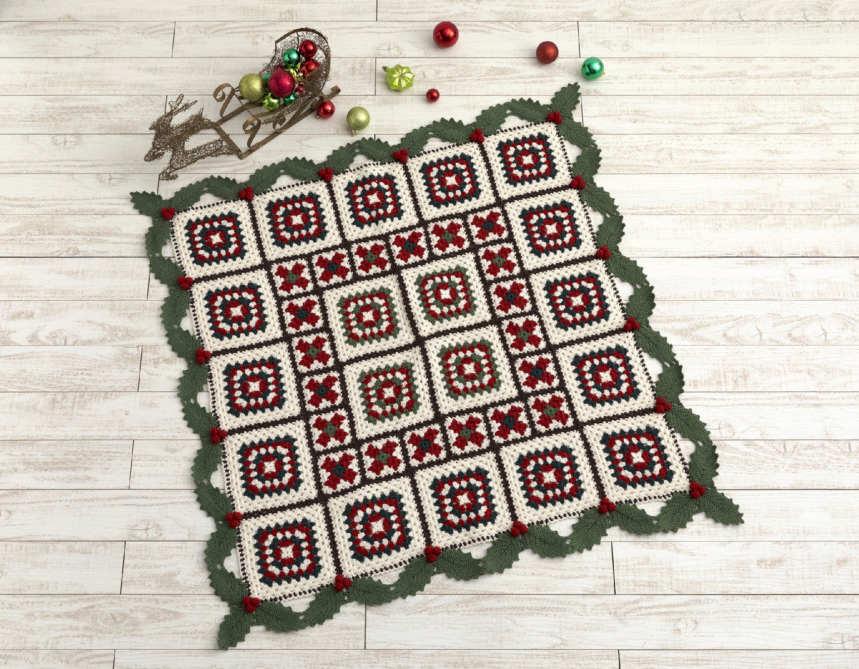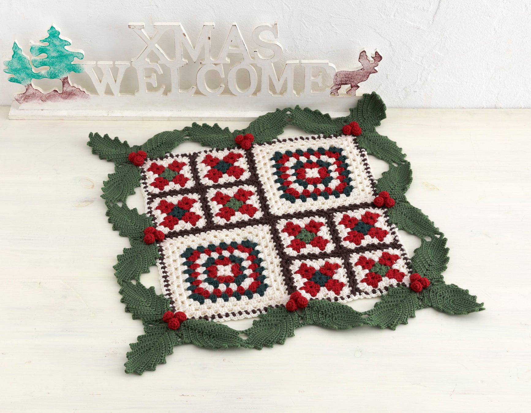 ヒイラギのモチーフで縁取りするクリスマスカラーのブランケットやミニタペストリー、カギ針編みの基本で完成する可愛いツリーは、クリスマスディスプレイのメインとして飾りたいシーズンアイテムです。
