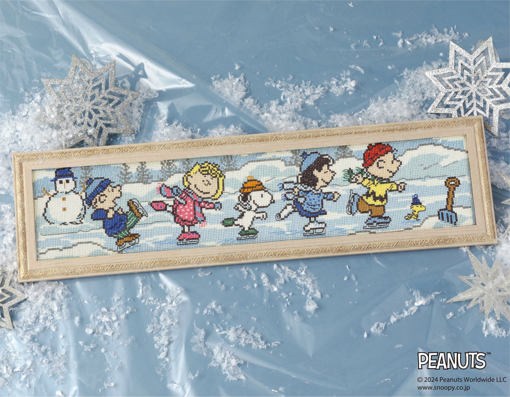 スヌーピーと仲間たちがサンタに扮してツリーに飾り付けするシーンや、アイススケートでホリデーを楽しむ様子をクロスステッチするキット、サンタ帽をかぶったスヌーピーとウッドストックの編みぐるみセットを発売します。笑顔がはじける楽しいシーンが、ハッピーな時間をお届けします。