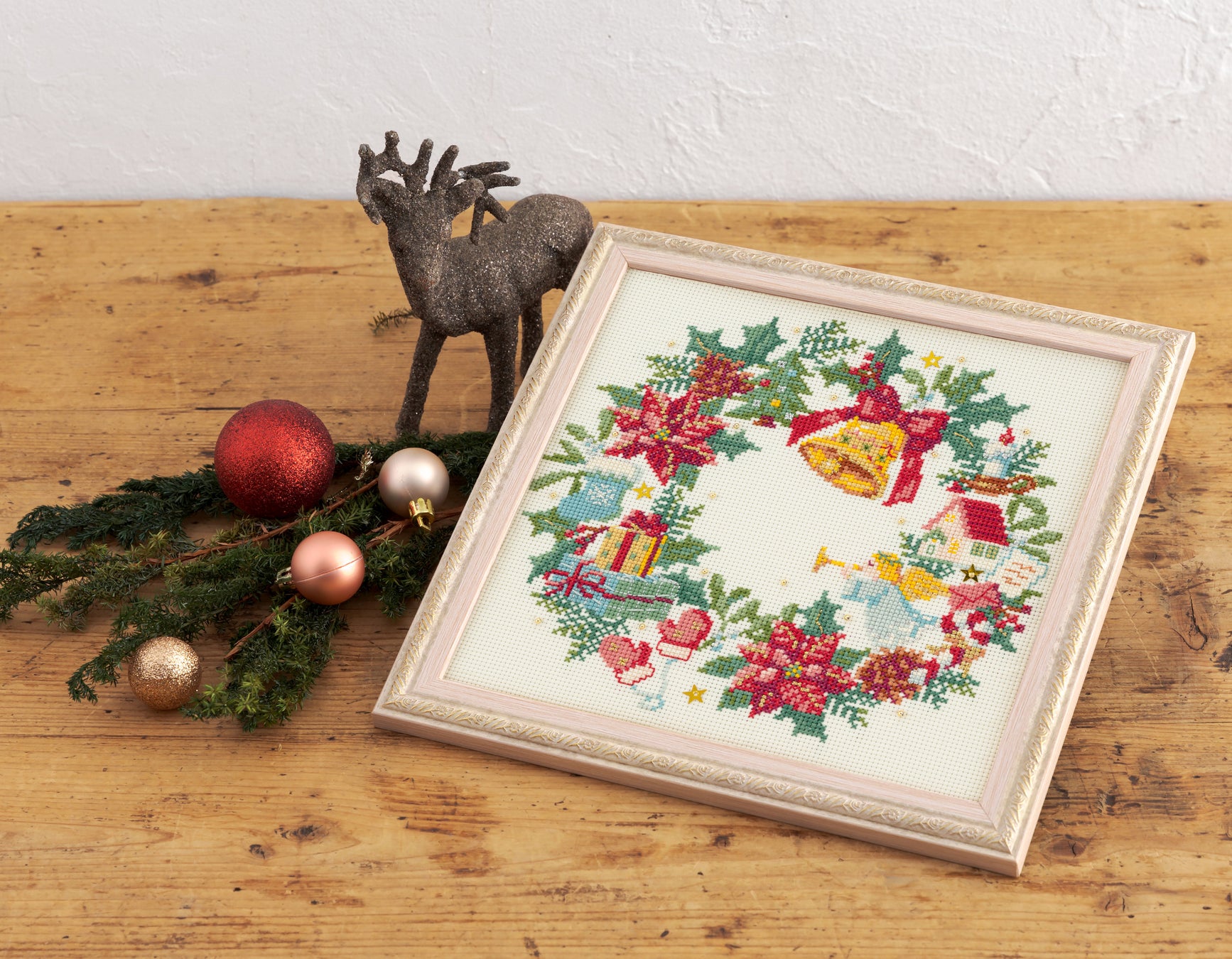 【クロスステッチフレーム<クリスマスのデコレーションリース>】