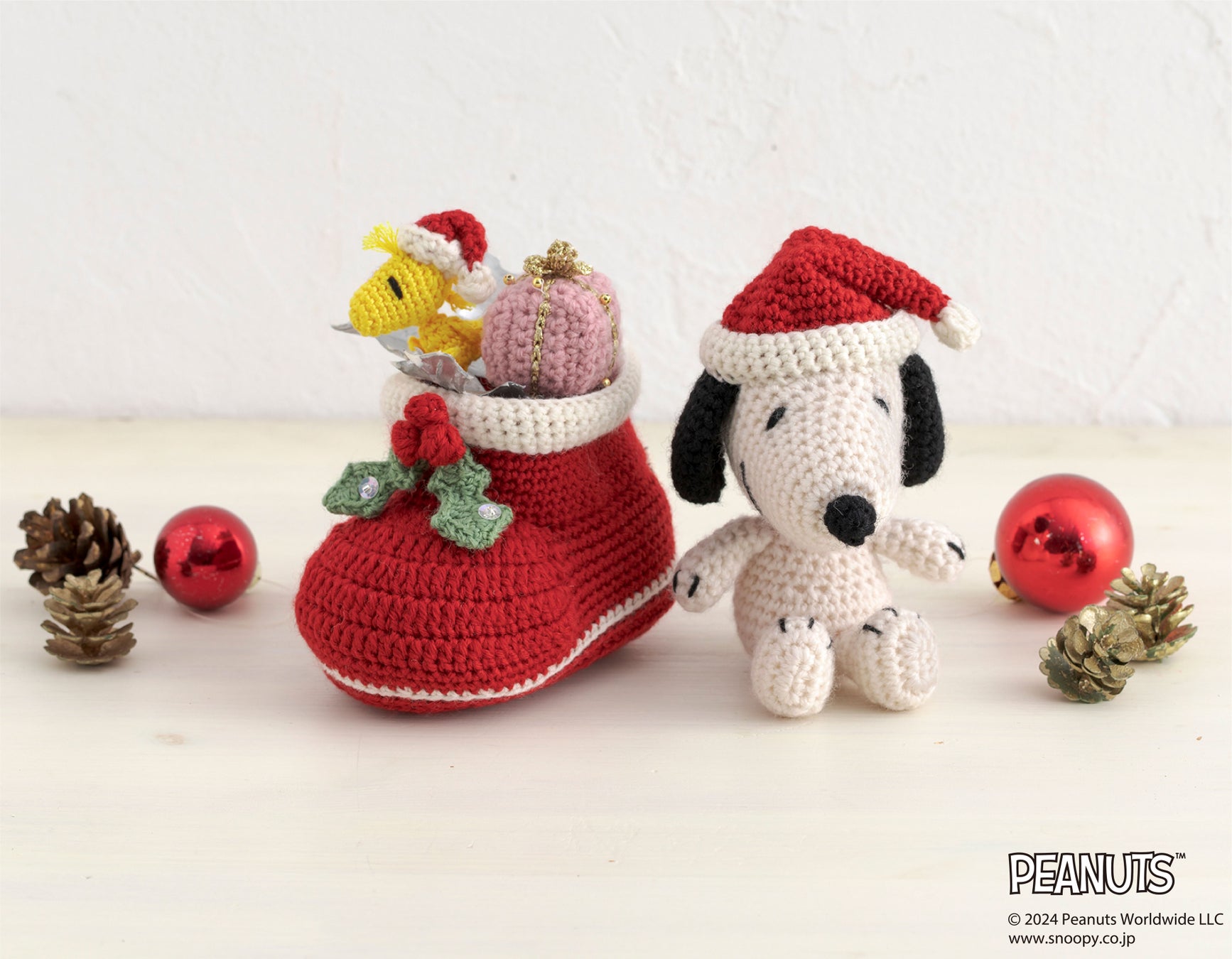【編みぐるみ<スヌーピーのクリスマスブーツ>】