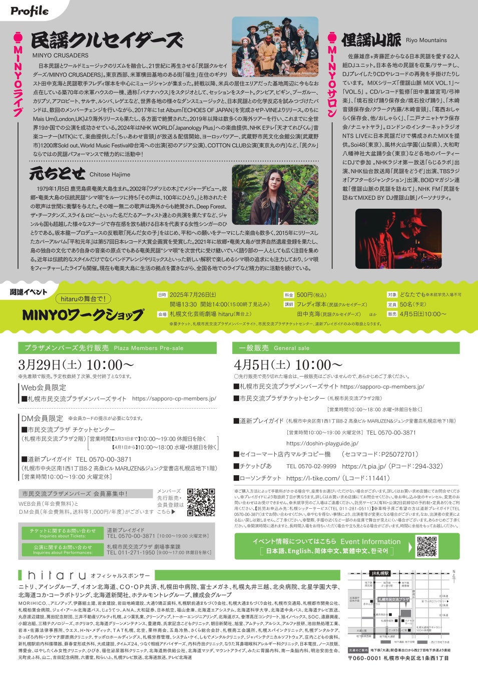 ※要チケット、札幌市民交流プラザメンバーズサイト、市民交流プラザチケットセンター、道新プレイガイドのみの取扱となります。
