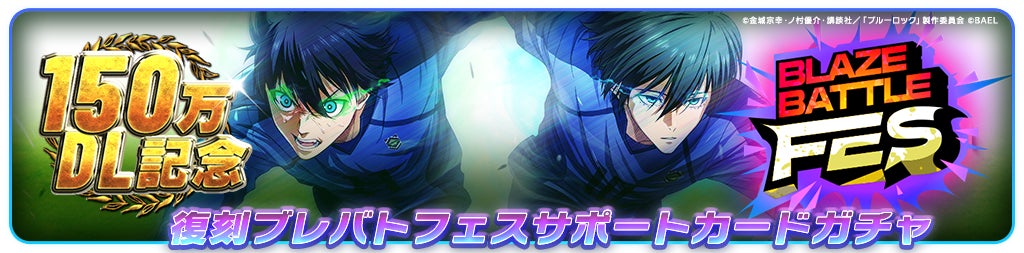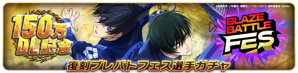 株式会社BAEL(本社:東京都新宿区、代表取締役:田村友一)は、TVアニメ『ブルーロック』を原作とするスマホゲーム『ブルーロック BLAZE BATTLE』(以下、ブレバト)は、累計150万ダウンロードを突破したことをお知らせいたします。