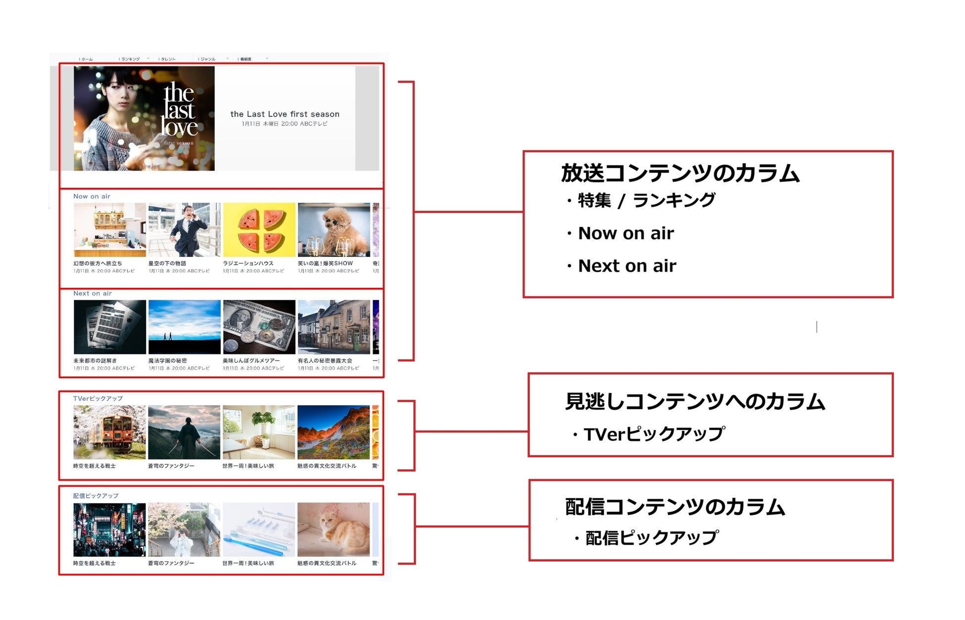 放送コンテンツへのカラム:リアルタイム放送コンテンツへの導線を提供