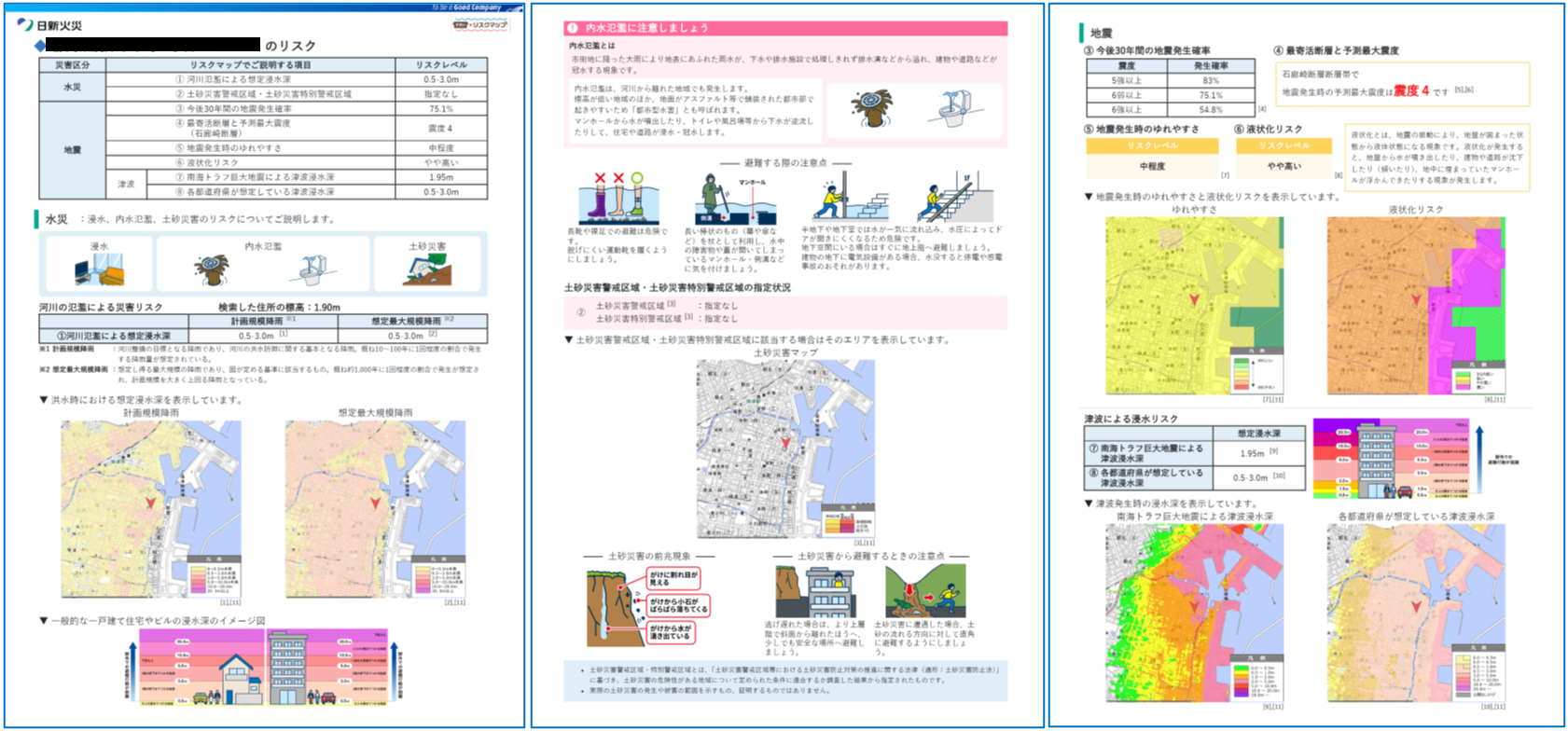 本サービスは、ご利用者の方が、将来予想される自然災害リスクを正しく認識してそれに備えるきっかけとなり、かけがえのない生命や財産を守ることにお役立ていただくことを目的としています。