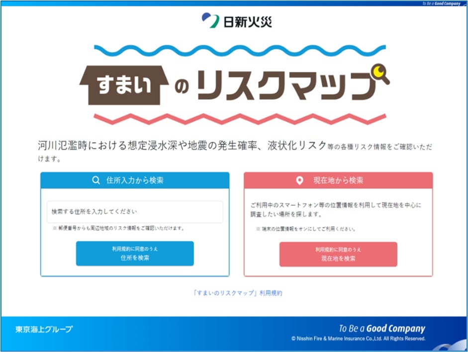 自宅周辺の水害・地震リスク情報を手軽にチェックできる「すまいのリスクマップ」を提供開始