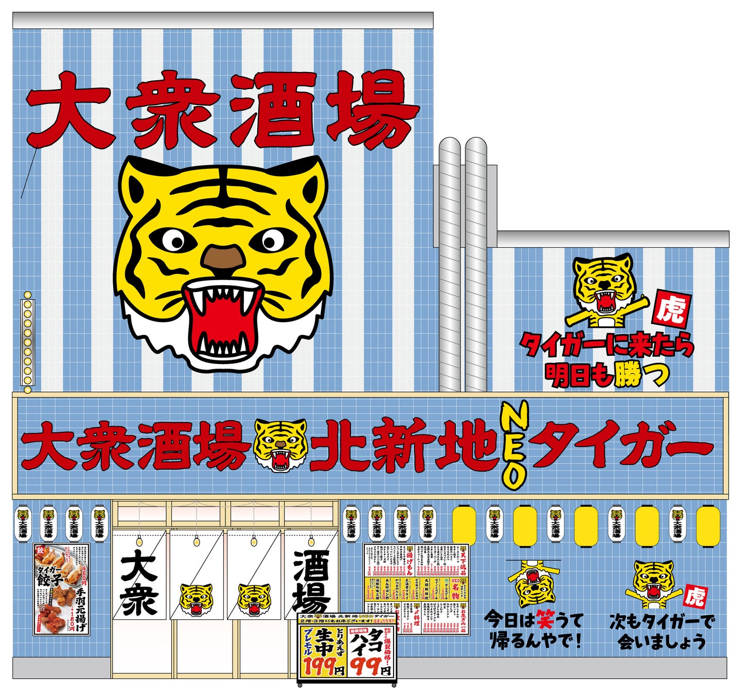 驚安の生ビールと大分中津からあげが自慢の大衆居酒屋「勝男」、そして炭火焼鳥が自慢の「口八町」等、居酒屋を中心に飲食店を10業態、100店舗以上を運営しております株式会社GALA(本社:大阪市)は、2025年5月29日(木)大阪キタ・北新地に「大衆酒場 北新地NEOタイガー」をオープンします。「大衆酒場タイガー」としましては5店舗目となりますが、今回オープンの店舗には店名に「NEO」を付け、これまでの店舗とは一線を画した新しいタイガーとして誕生します。