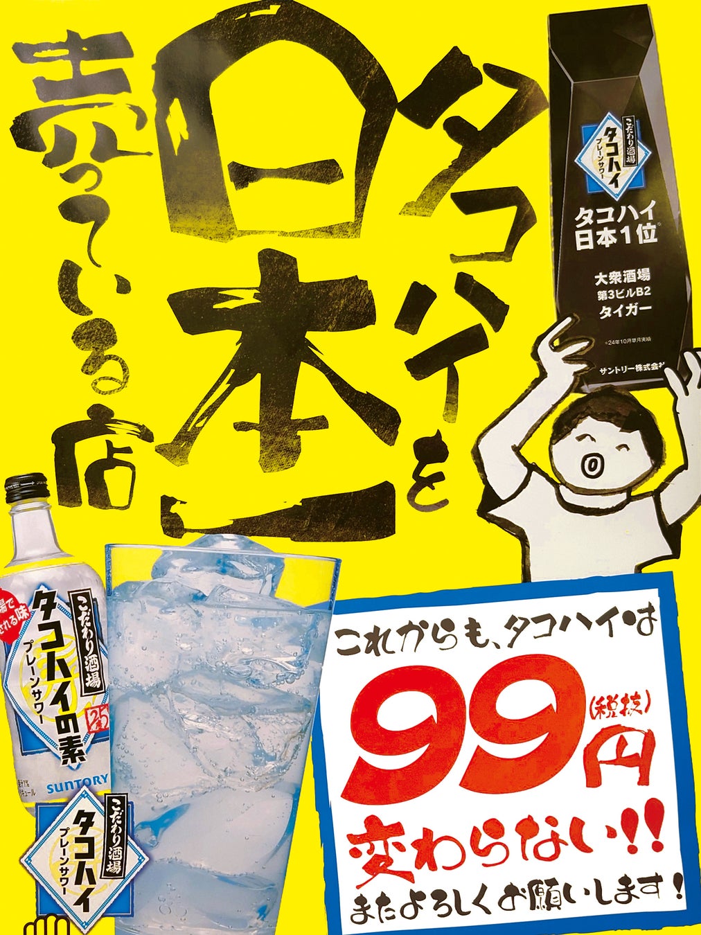■タコハイ一杯99円!店舗販売出数が日本一! 爆裂価格を実現した「大衆酒場タイガー」