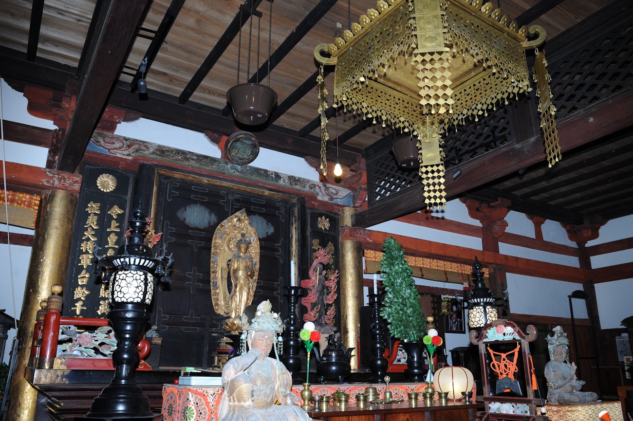 御本尊・十一面観世音菩薩は、聖徳太子が根のついたままの杉の大木に刻まれたため、「植木観音」の名で信仰を集めています。織田信長の焼き打ちの際には、地元の信者が担いで御本尊を避難させ、今でも像のかかと部分に引き摺った跡が残ります。