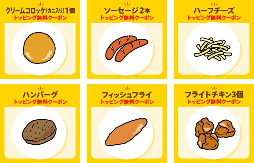 ④トッピングの図柄が揃ったら、トッピング無料クーポンを獲得