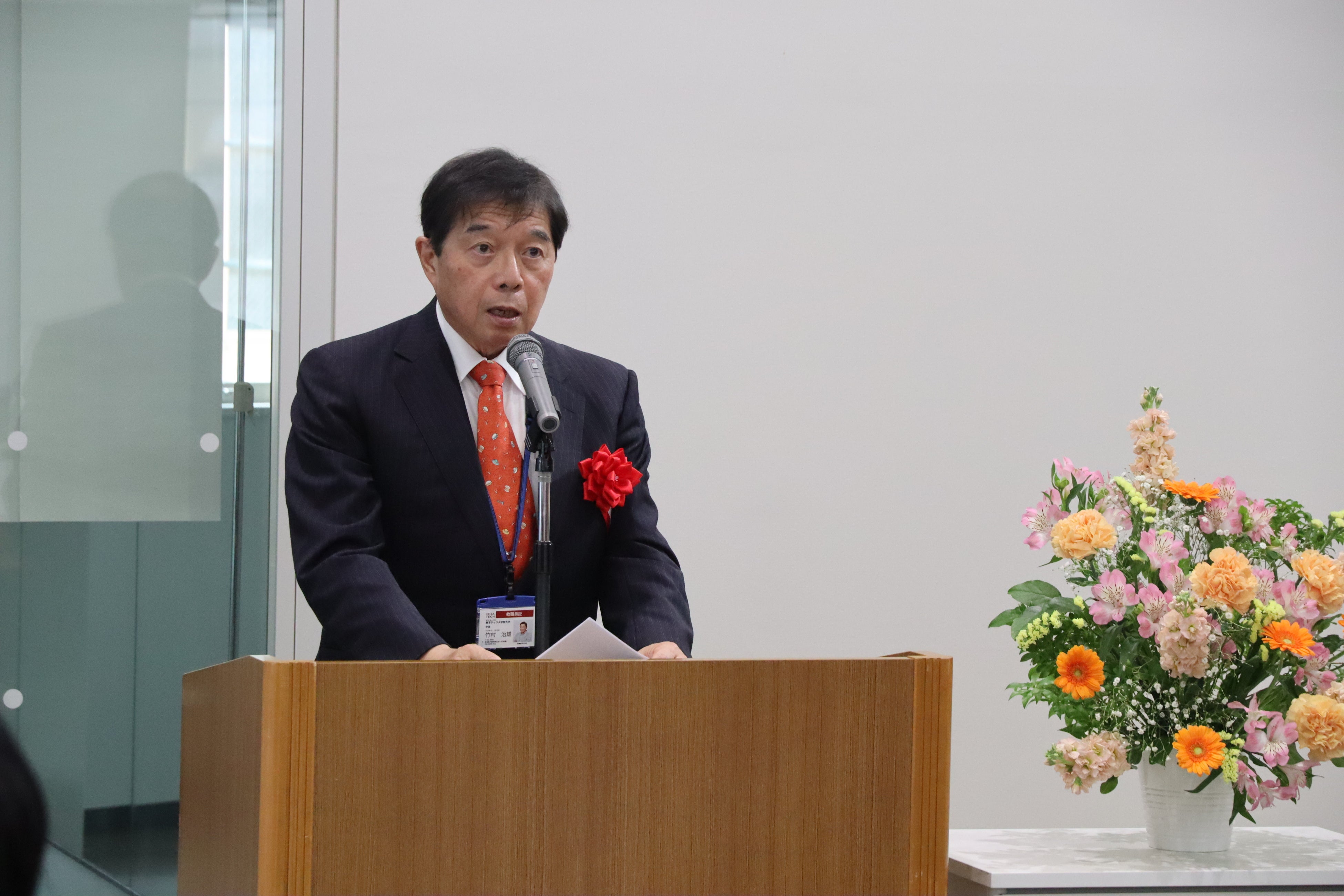 平将明衆議院議員(デジタル大臣)からは、「現在、国を挙げて学校教育のDXを加速させているところであり、そのような中、本学のようにデジタルと教育経営の両面からリーダーを育成する場が生まれたことは、タイムリーかつ心強い限り」「 (教育テック大学院大学は)政府の「デジタル田園都市国家構想」のような国家ビジョンとも呼応する形で誕生いたしました。オンラインで全国どこからでも学べる本学の仕組みは、地方の教育者にも門戸を開き、各地から志ある人材が集い、学び合い、得た知見を地域の現場へ持ち帰ることを可能にします。こうした好循環が生まれることで、日本全体の教育力が底上げされるものと大いに期待しております。」と祝辞をいただきました。そのほかの祝辞として、文部科学省高等教育局 局長 伊藤学司様、埼玉県知事 大野元裕様、埼玉県入間市長 杉島理一郎様、埼玉県戸田市 教育長 戸ヶ﨑勤様、早稲田大学名誉顧問 日本1