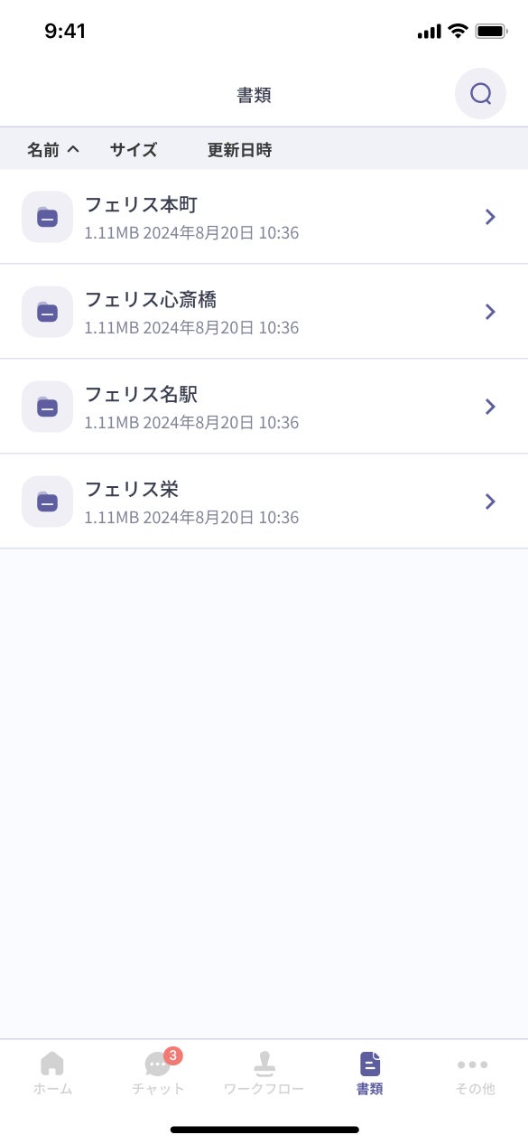 各種明細書、見積書、点検報告書などの書類は管理会社からのメッセージに添付されて届きます。さらに書類の種別ごとに自動フォルダ分け・保存が可能なので、いつでも簡単に書類の見直しができます。