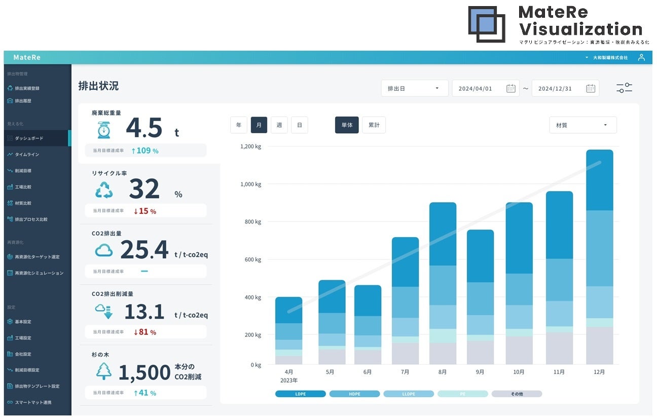 本取り組みはdigglue社が提供している循環型デジタルプラットフォーム「MateRe(マテリ)」を活用し、温室効果ガス(GHG)排出量やトレーサビリティデータの可視化を行うことでステークホルダーへの提案を進めていきます。この2社による取り組みは循環経済への更なる理解醸成と取組促進を目指すための官民連携強化を目的とした官民パートナーシップである「循環経済パートナーシップ(J4CE)」にも取組み事例を掲載しています。