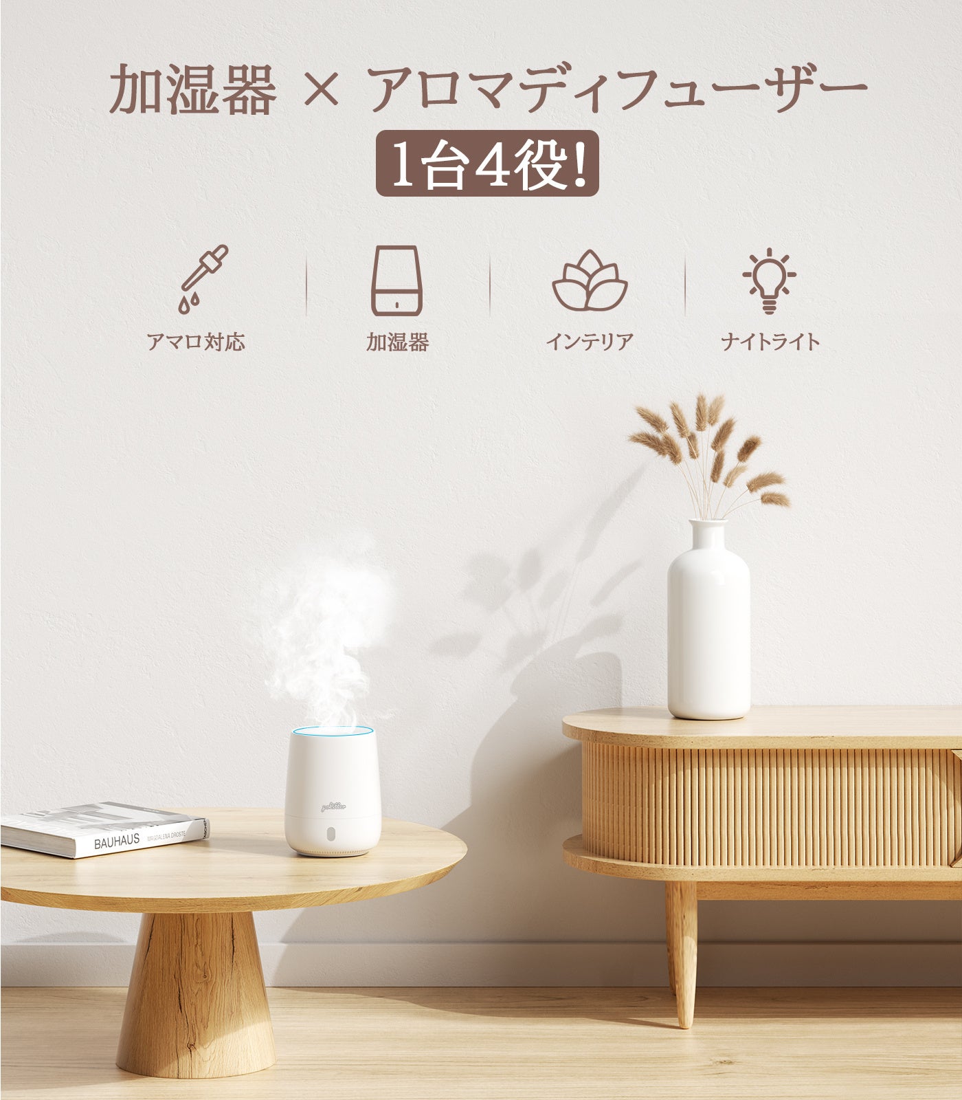 そして、このアロマディフューザーは、加湿器としてだけではなく、自然な香りと癒しを一緒に体験できるアイテムです。効率的な省エネ設計により、電源を接続して使用していただくタイプで、小さくて軽量ながら、8時間もの連続運転が可能で、精油の香りを均等に放出するための最大限の努力をしています。もし加湿能力が高い商品をお探しの場合は、ポキッターのPKT-HDPROハイブリッド式加湿器をご検討ください。