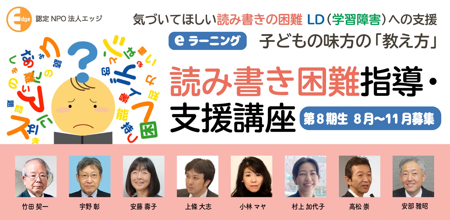 東京都港区の認定NPO法人エッジ(会長藤堂栄子)は【読み書き困難指導・支援講座】第8期を8月1日に開講。読み書きに困難がある子どもの理解と支援・指導を専門家によるeラーニングで学べます。