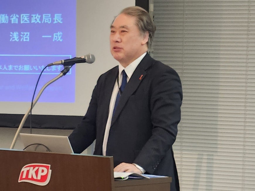 初めに登壇した浅沼医政局長は「バイオ・ヘルスケアベンチャーへの期待」と題し講演。行政における医薬品産業政策の責任者として、医薬品産業の課題と対策の方向性を示し、その中で創薬力の強化について言及されました。我が国の創薬スタートアップのおかれた状況と大手製薬企業の課題を示したうえで、産業構造のエコシステムを正の循環に導かなければなららないとし、政府全体として、グローバル展開も見据えた中長期的な戦略を策定し、実効性ある取組を進める必要があるとの、決意を示されました。