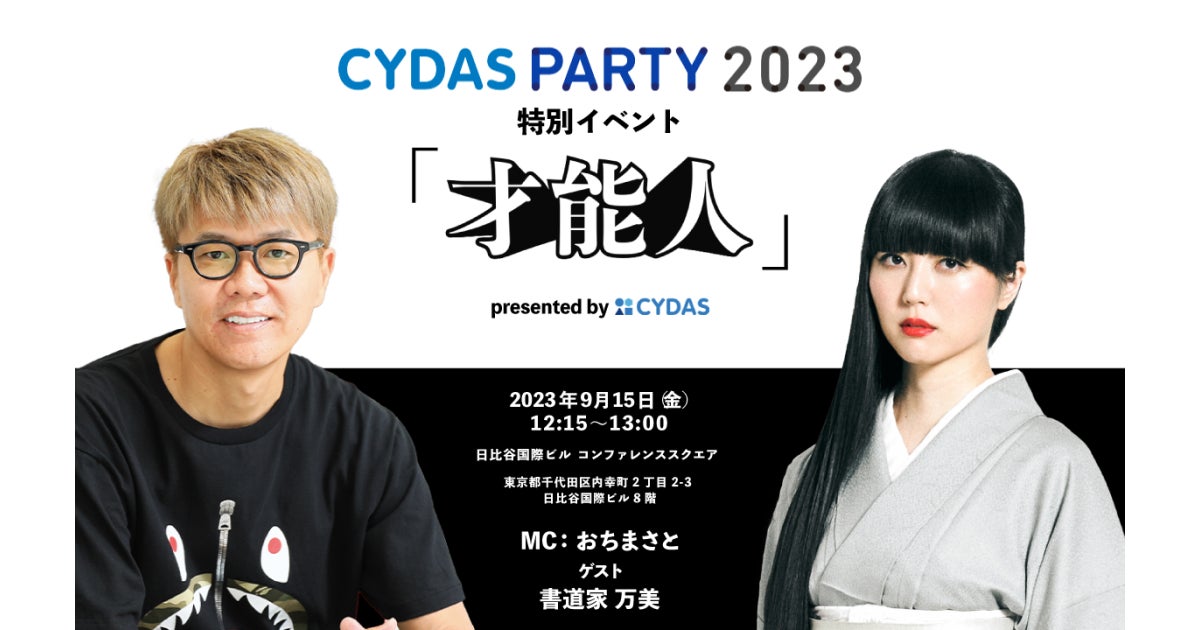 世界を巡る書道家 万美 × おちまさとの公開トークライブ、9/15「CYDAS PARTY 2023」にてラジオ『才能人』特別イベント開催。