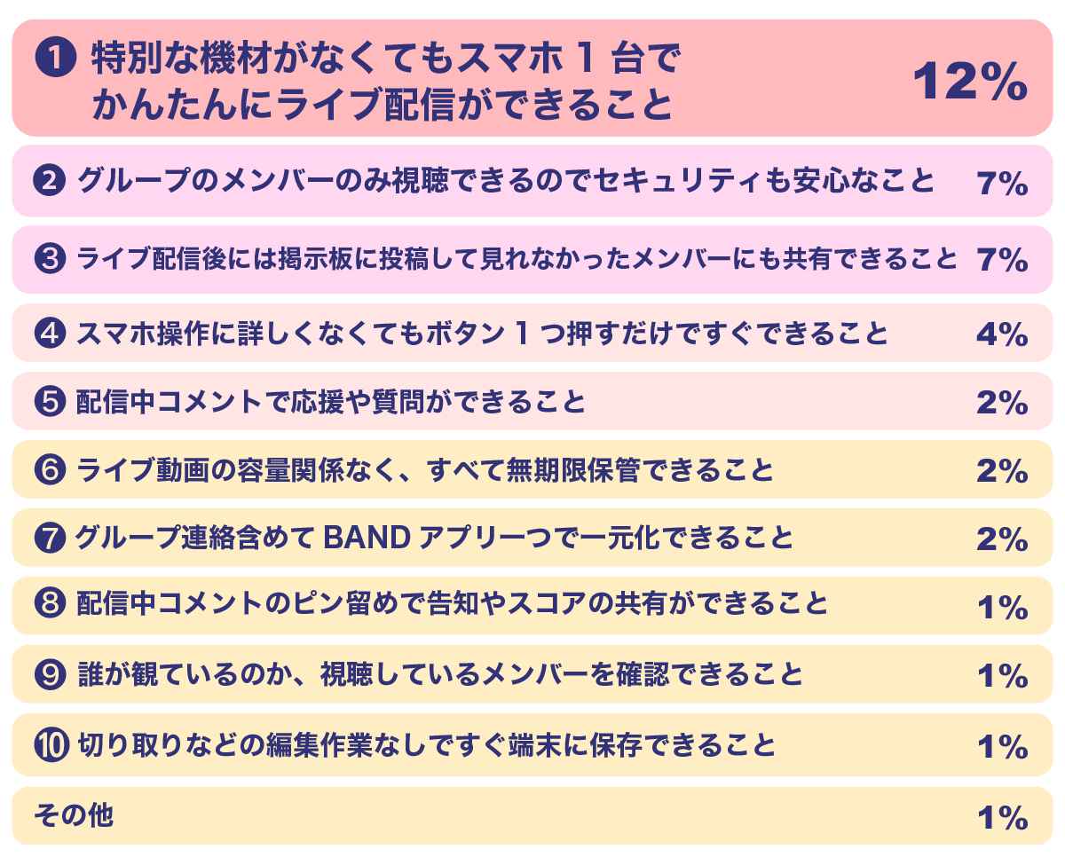 Q5. BANDのライブ配信機能が他社のライブ配信サービスに比べて最も良いと思うことは?