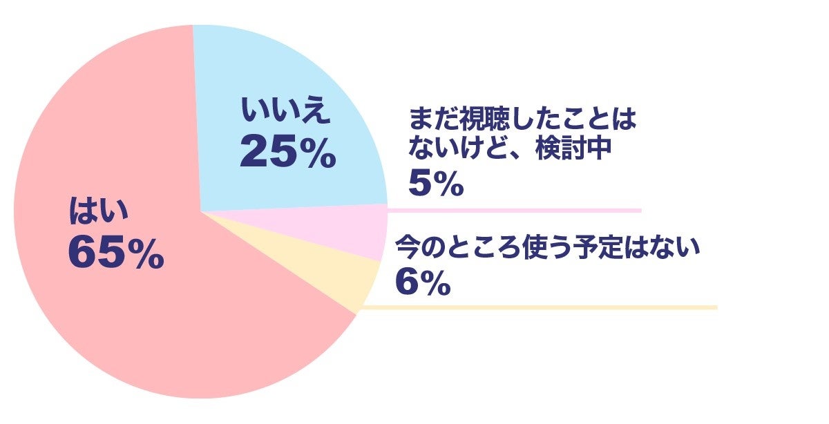 「はい」が65%半分以上を占めました。「まだ、配信したことはないけど。検討中」が5%で、多くの方がライフ配信を見たことがわかります。