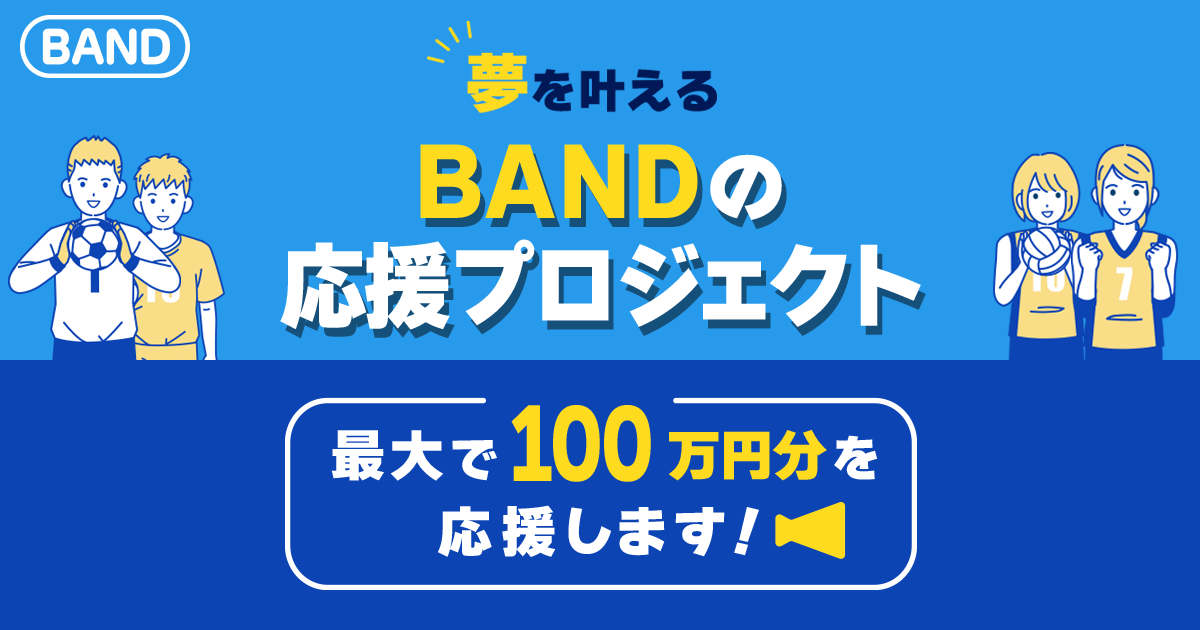 今回は「全国大会に出場して制覇を目指しているスポーツチームをBANDが最大100万円をサポート」するキャンペーン開催中です。