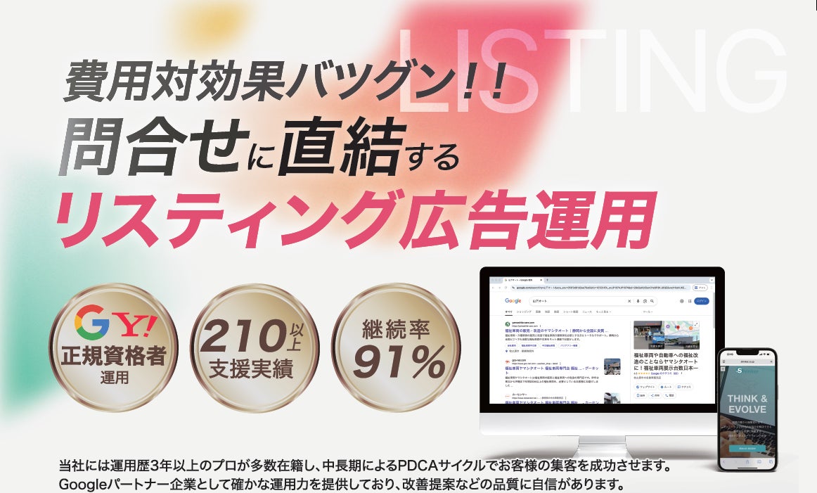 Google・Yahoo!などのリスティング広告を軸としたWEB広告運用代行サービスを提供しています。もともとは手数料をパーセンテージとしていましたが、より地域にとってリーズナブルに対応可能に