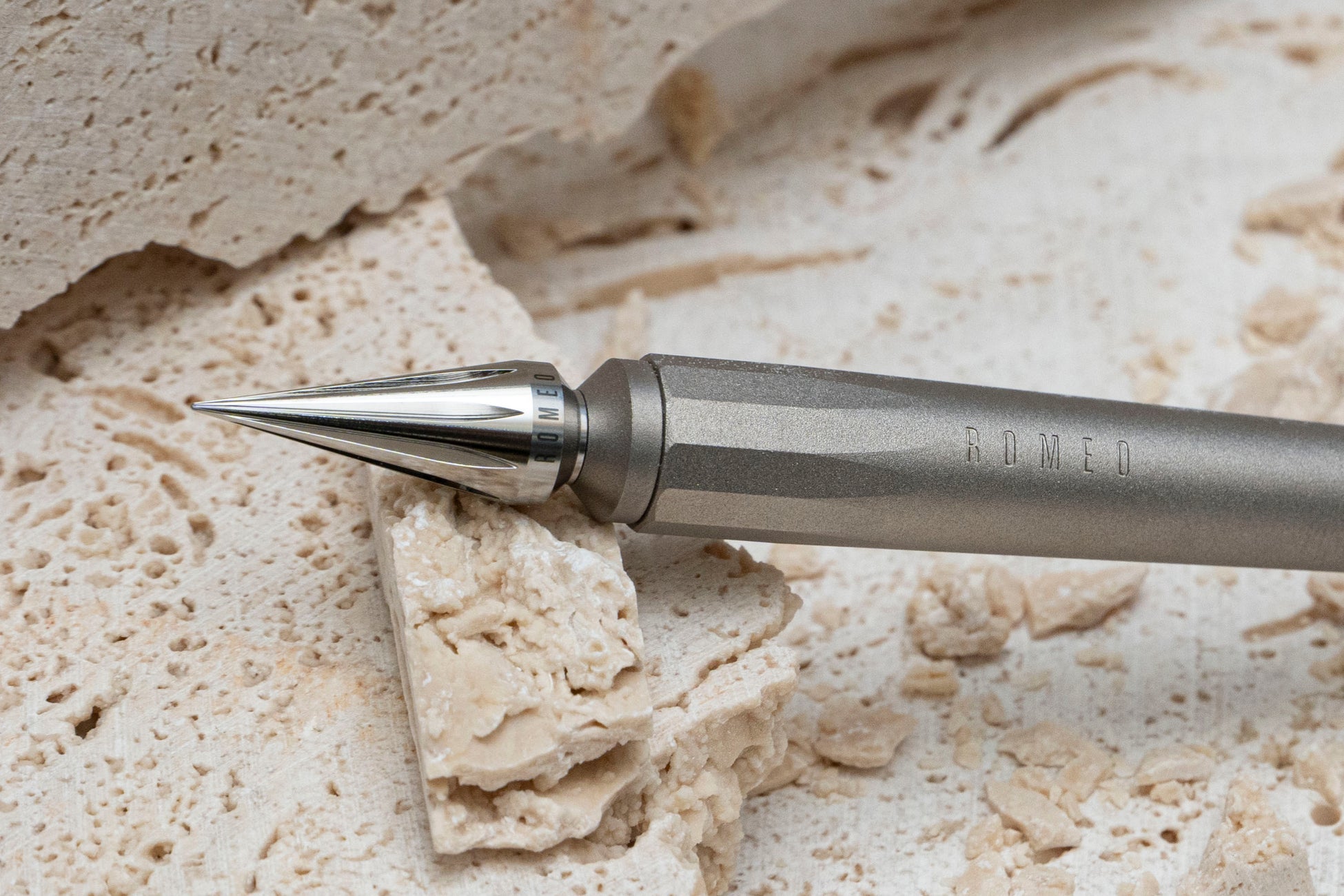 ROMEOは、その古典的な筆記具である「つけペン」を、航空宇宙産業や医療分野でも使われる64チタンを素材として再構築し、始まりを意味する「イニシャル(initial)」から「イニチウム」と名付けました。