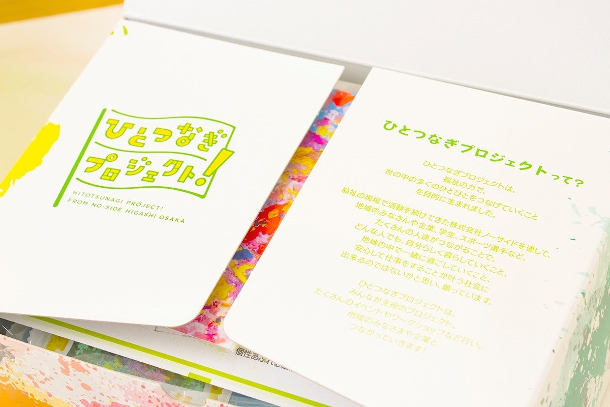 2社はノーサイドが『福祉の力で世の中の多くの人々をつなげていくこと』を目的に立ち上げた、「ひとつなぎプロジェクト」に賛同しました。社会に貢献できる素晴らしい取り組みと考えて開発がスタートして、アーティストの創造力豊かな作品をパッケージに採用することで、新しい価値がついた商品が完成しました。本商品を通じて社会により大きな参画のつながりが広がることを願っています。