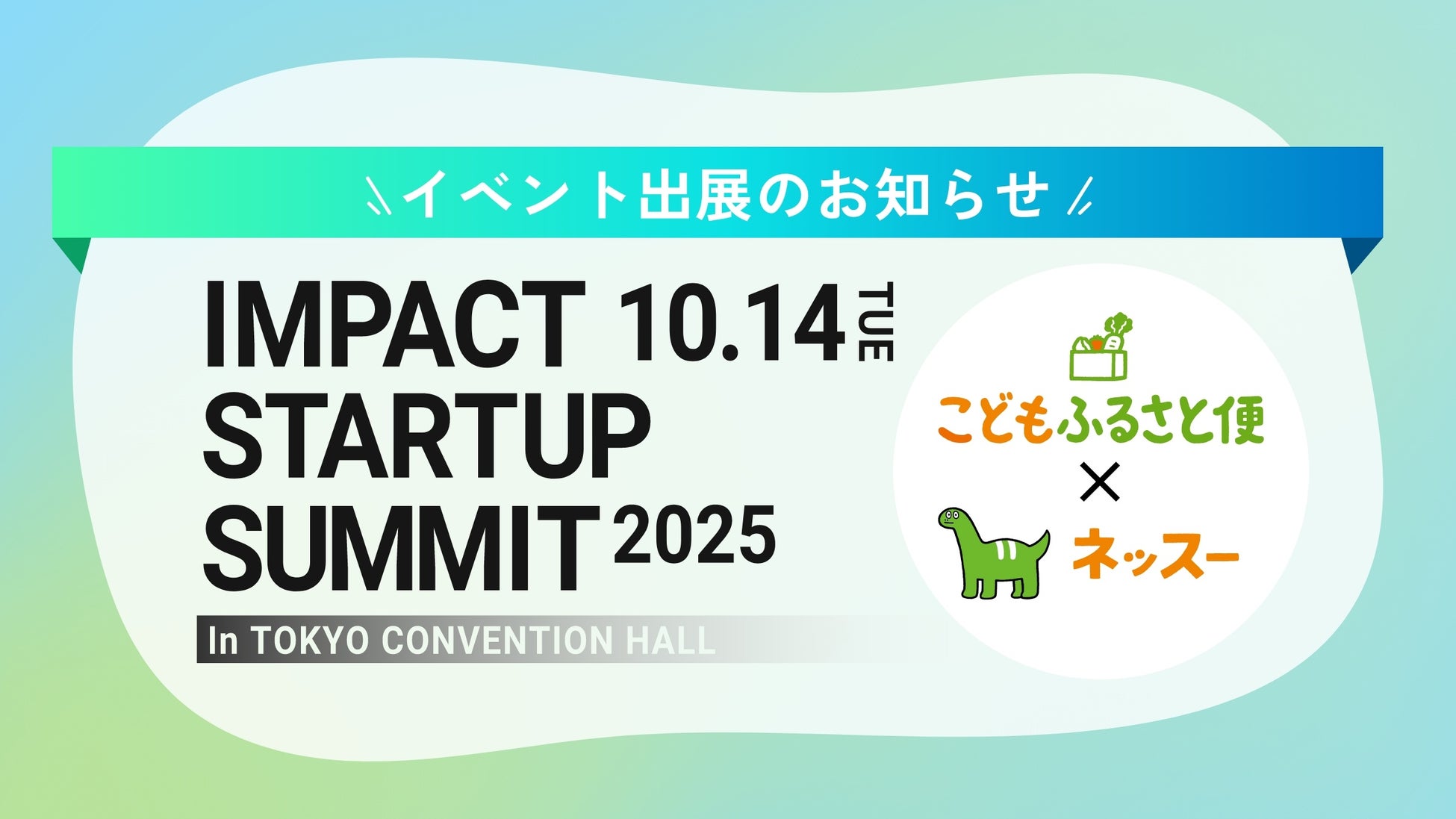 「生まれた環境によるこどもの機会格差が存在しない社会」の実現を目指すスタートアップ、ネッスー株式会社(本社:東京都世田谷区、代表取締役:木戸優起、以下 ネッスー)は、2025年10月14日(火)に東京コンベンションホール(京橋)で開催される「IMPACT STARTUP SUMMIT 2025」に出展し、「こどもふるさと便」の取り組みを多くの来場者に紹介します。