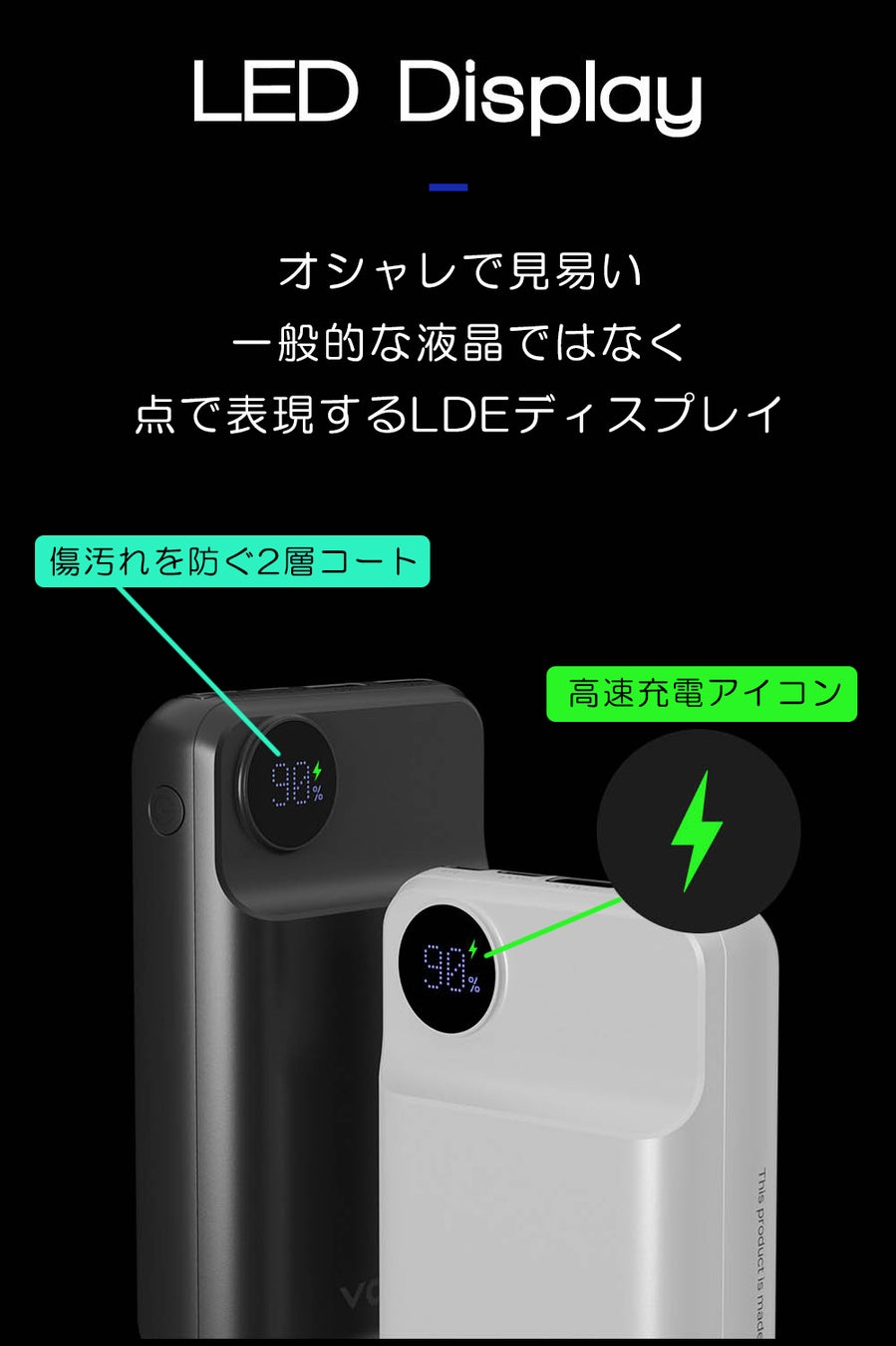 【持ちやすく携帯性に優れた20000mAhのモバイルバッテリー】