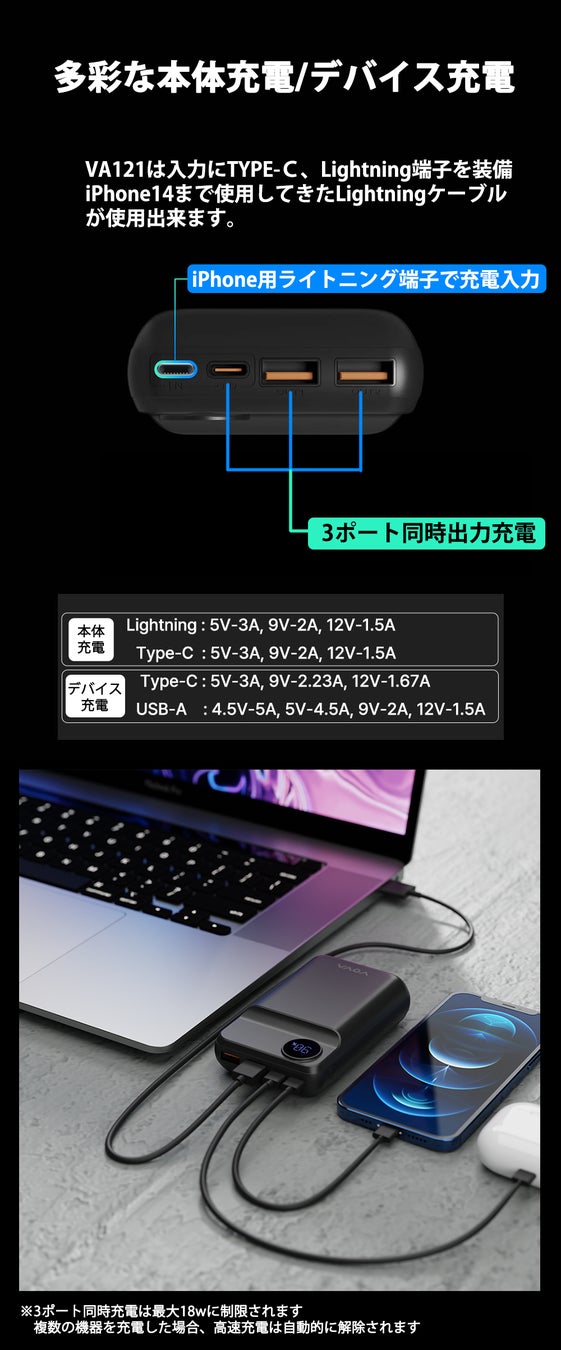 多彩な本体充電/デバイス充電