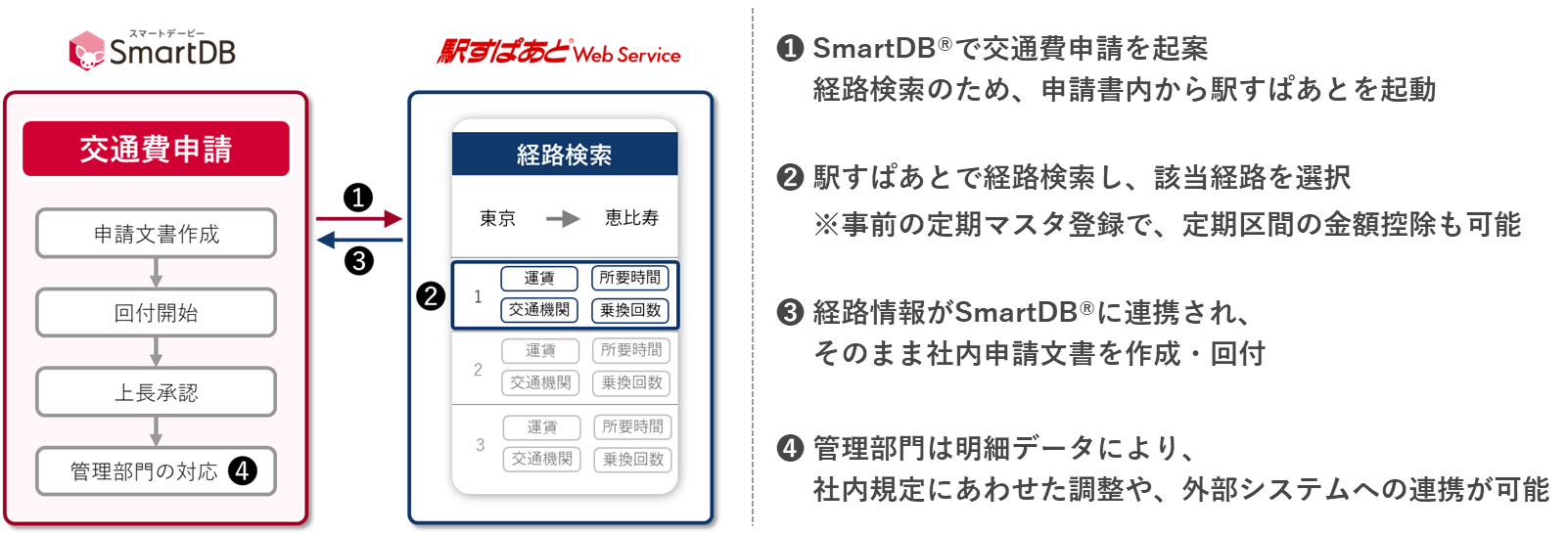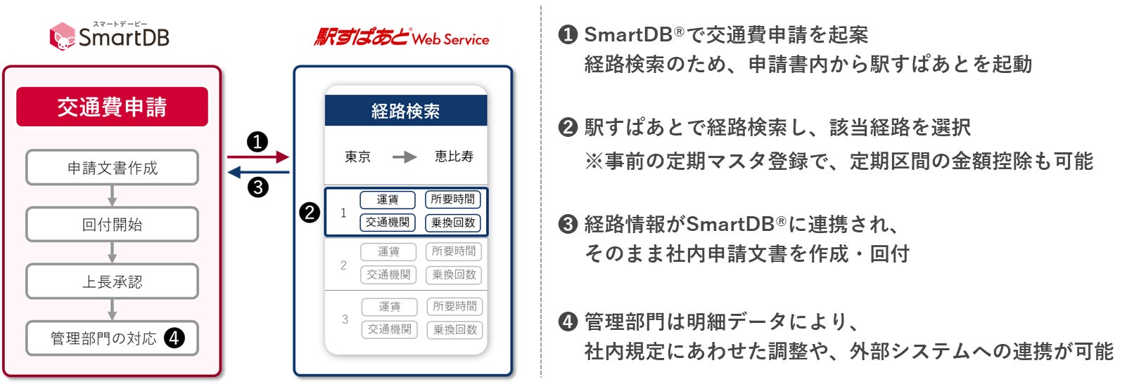 「駅すぱあとWebサービス」が大企業向け業務デジタル化クラウド「SmartDB®」のオプション機能として連携を開始