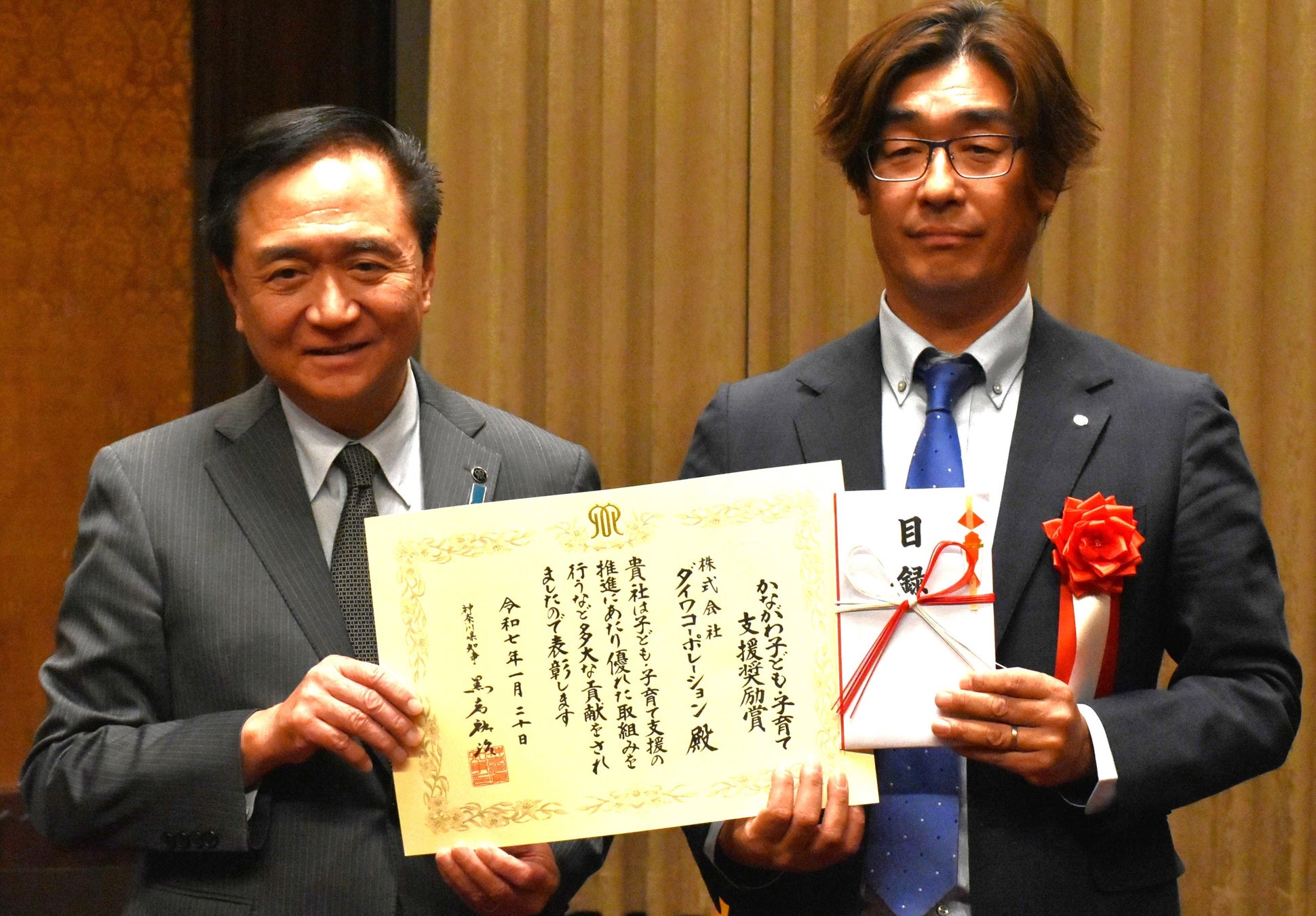物流サービスを提供する株式会社ダイワコーポレーション(所在地:東京都品川区、代表取締役社長:曽根 和光)は、神奈川県が主催する「第18回かながわ子ども・子育て支援大賞」において、奨励賞を受賞し、1月20日に執り行われた表彰式にて、黒岩 祐治神奈川県知事より表彰状が授与されました。