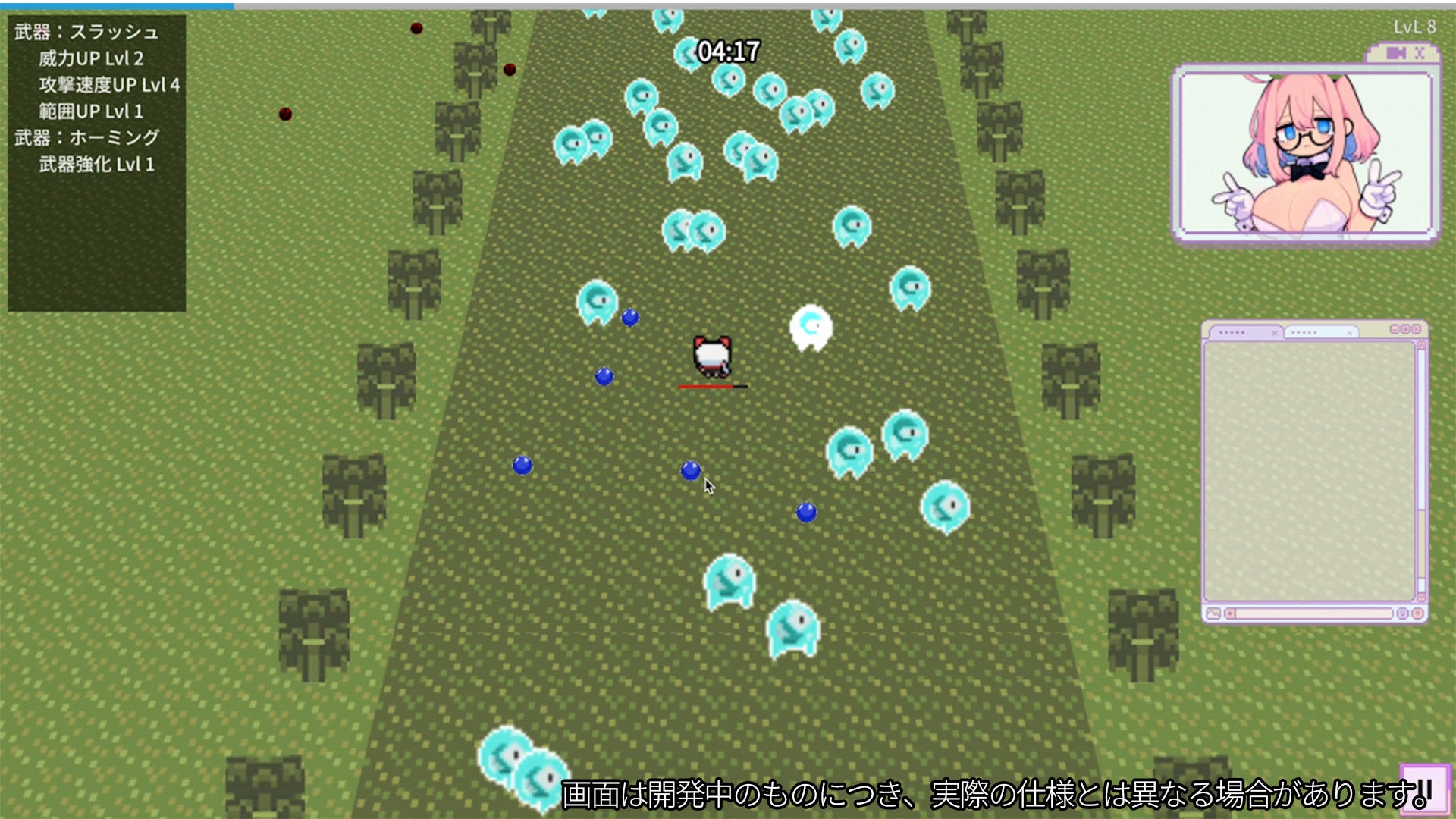主人公は巷で話題の新人美少女ライバー。しかし、その本性は陰キャでストレス耐性0のニートであった……。配信中のトラブルを妄想に変換し、迫りくるストレスをひたすらなぎ倒すハクスラタイプの爽快シューティング。彼女ははたして幸せになれるのか?その鍵はプレイヤーと視聴者のアクションが鍵を握っている。